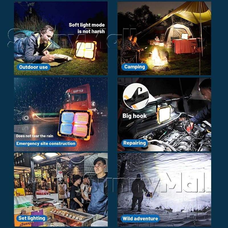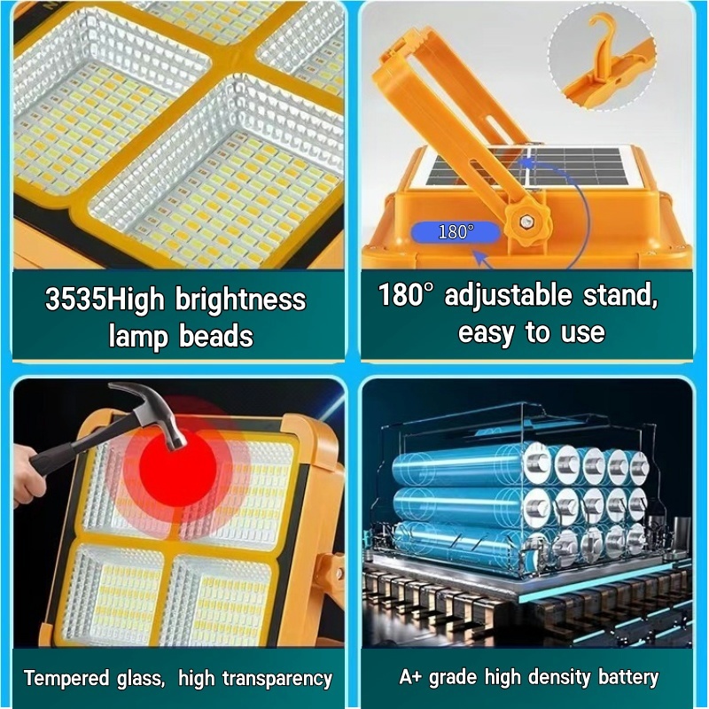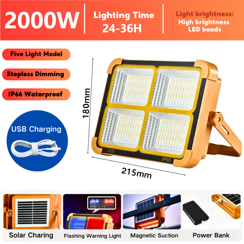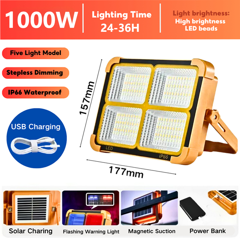 LIZY Solar Emergency Light 1000W Solar Flashlight Rechargeable Outdoor Waterproof Emergency LED Flood COD