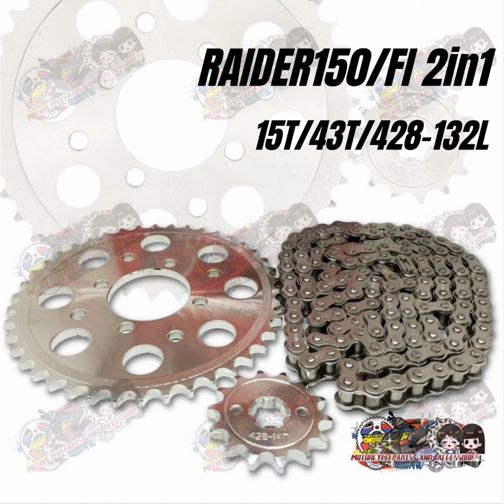 LJ Motorcycle 428 2in1 Chain Sprocket Set Raider 150/FI 15T/43T/132L