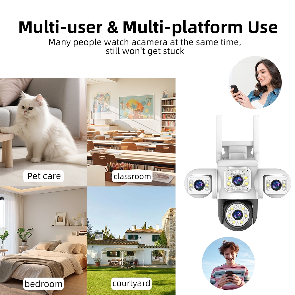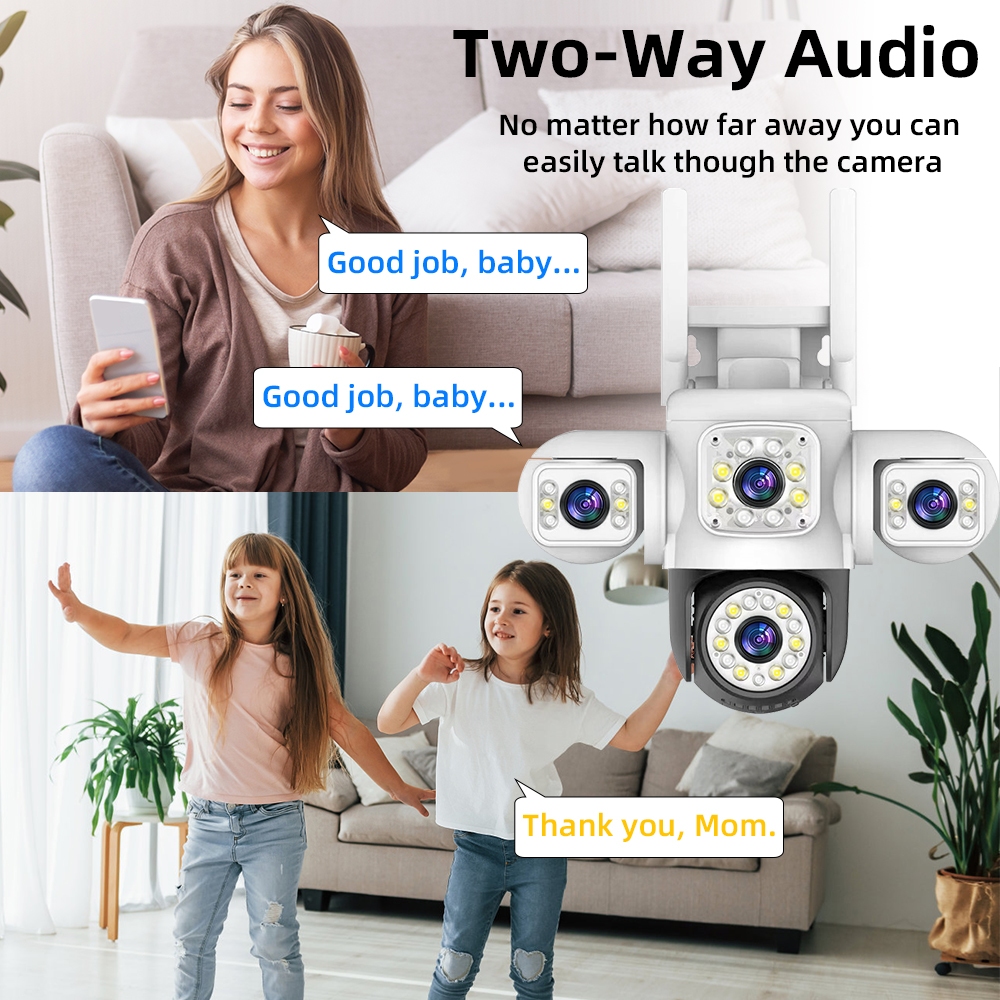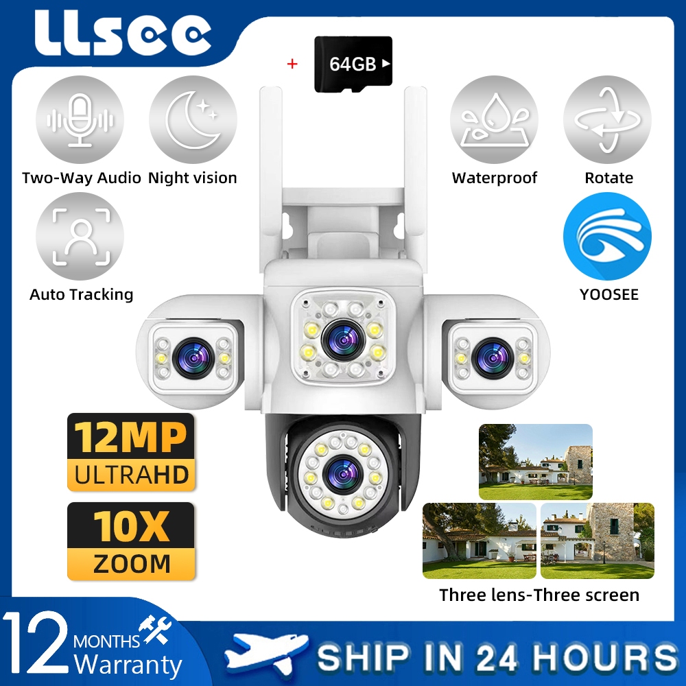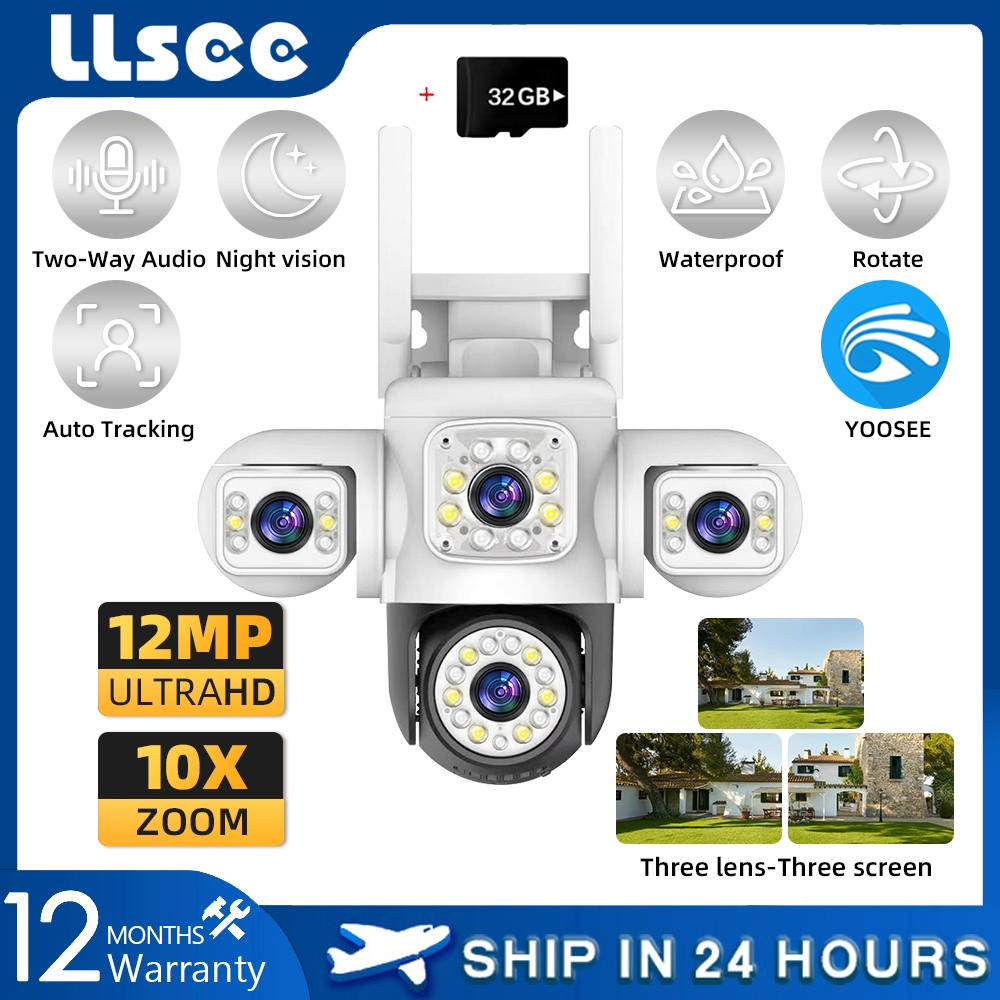 LLSEE YOOSEE three lens 12MP 6K monitor wireless WIFI outdoor camera 360 no dead angle PTZ rotation detection alarm CCTV motion tracking color night vision two-way call