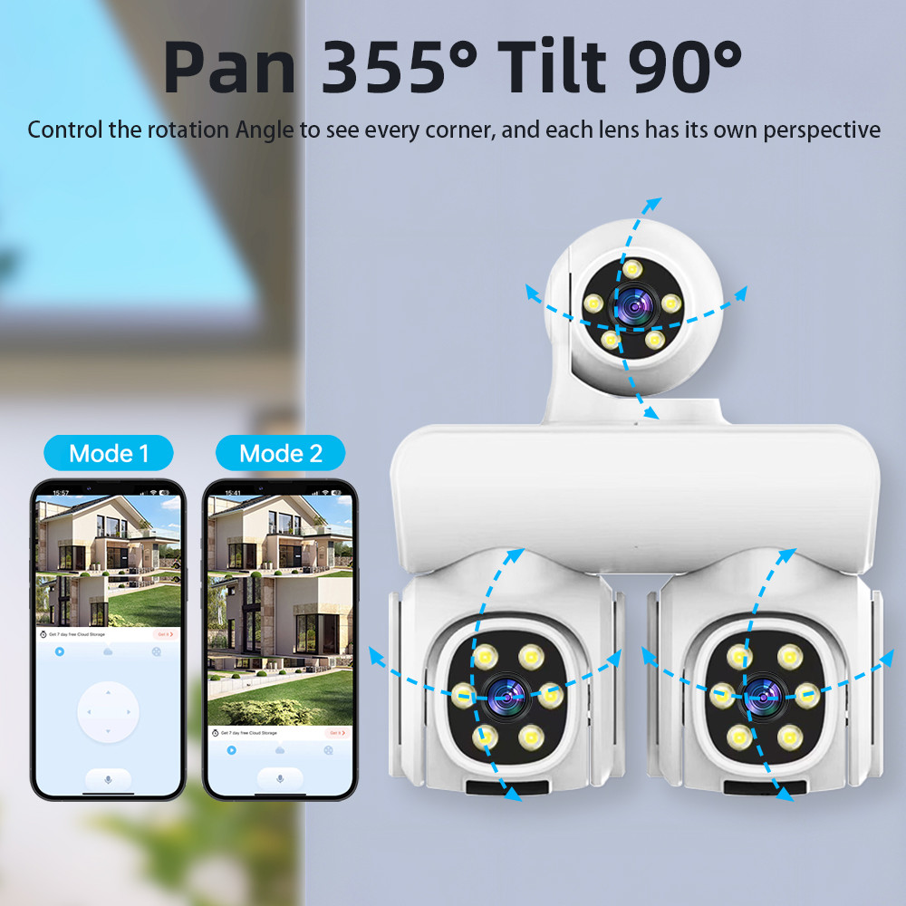 LLSEE icam365 12MP 6K 3 lens phone PTZ control wireless 4G SIM card CCTV outdoor waterproof WIFI 360 IP camera motion tracking detection alarm monitoring security camera call