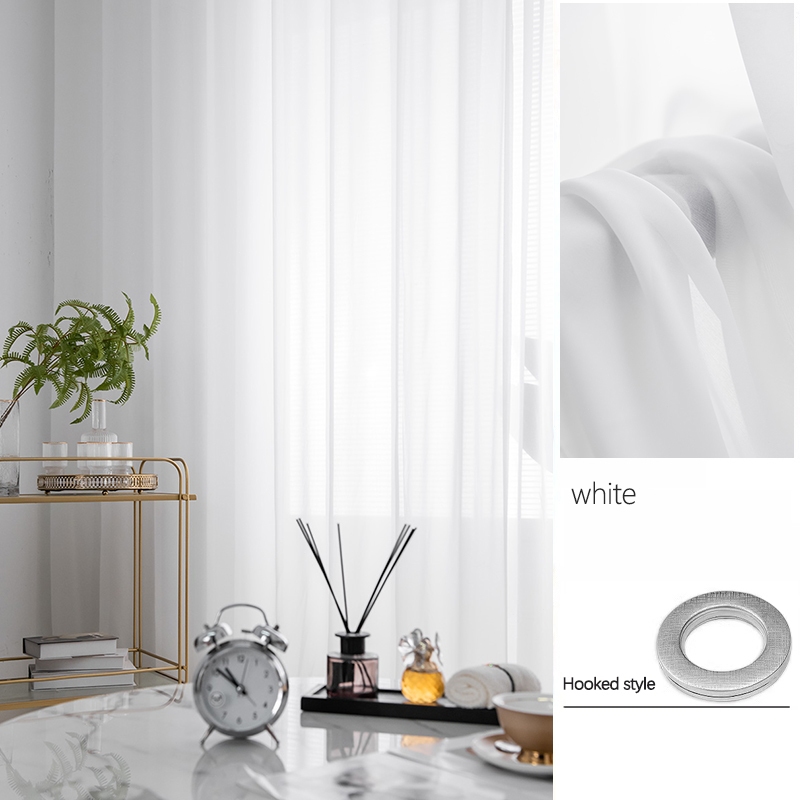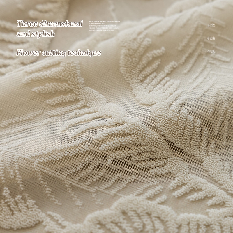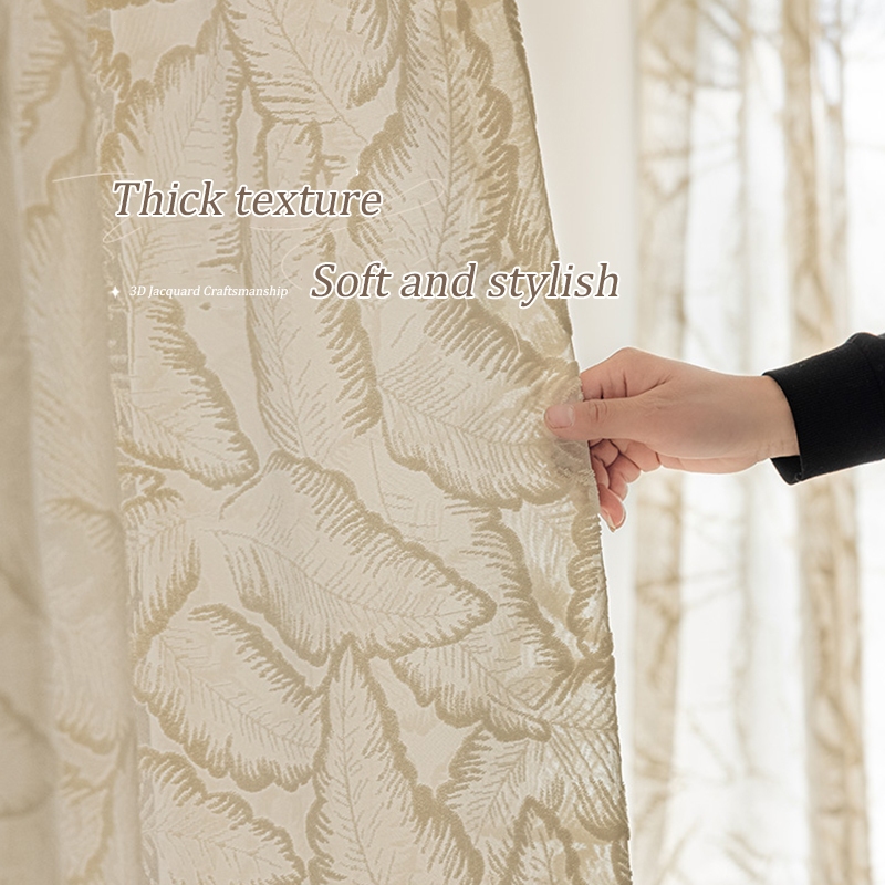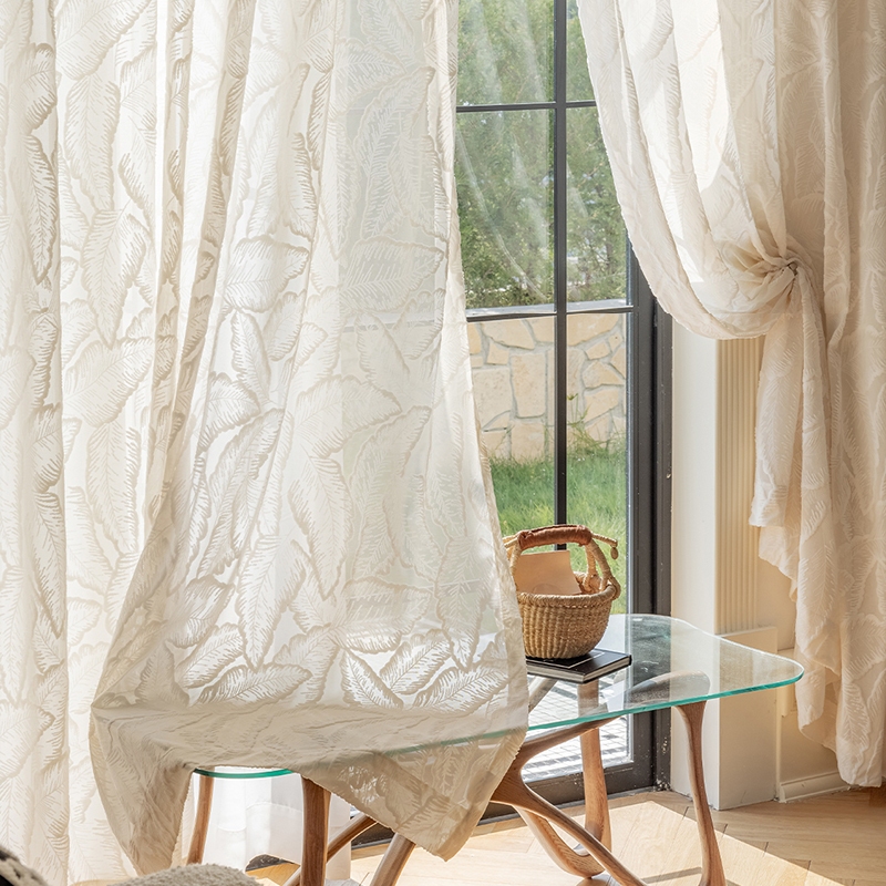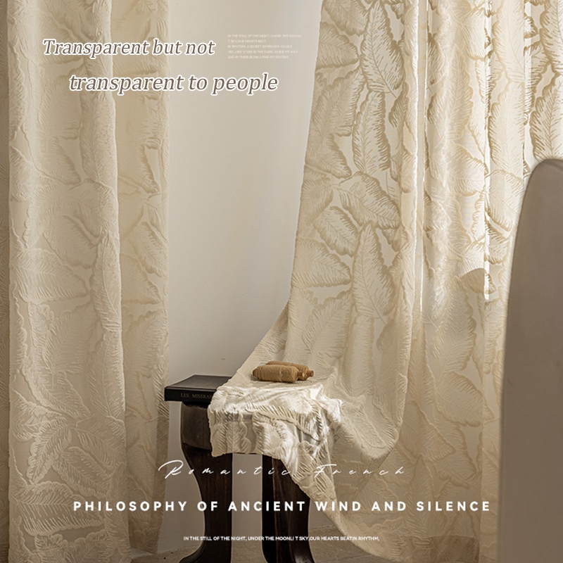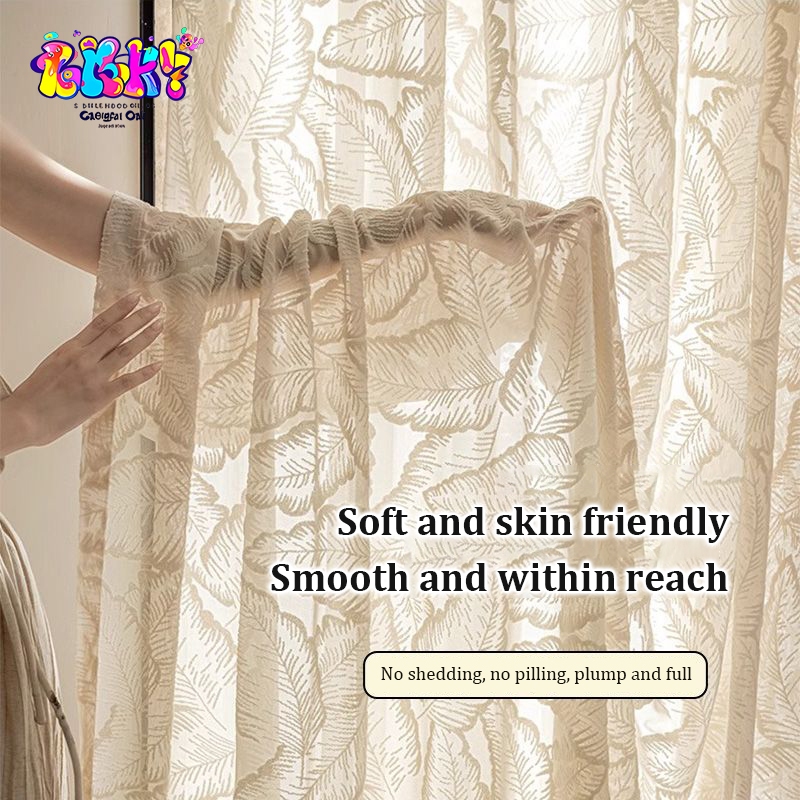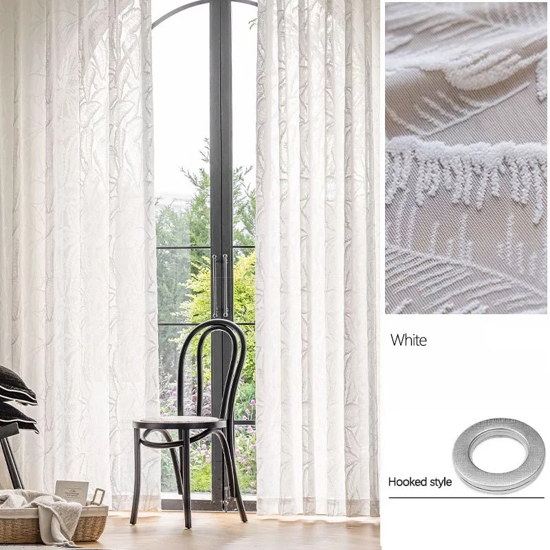 LMHY Leaf Sheer Thin Curtain For Window 5/7FT See Through White With Ring Kurtina Elegant Aesthetics