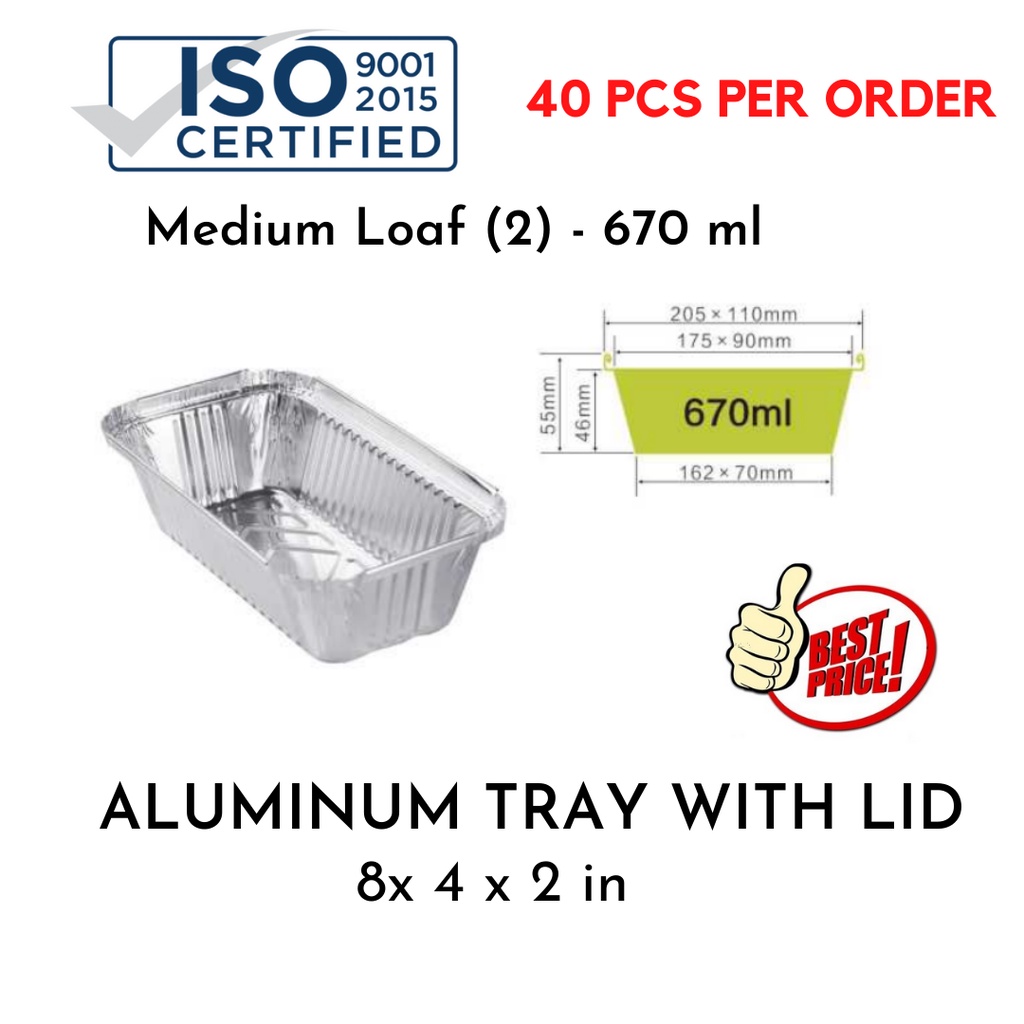 LOAF PAN Aluminum Tray with Plastic Lid Medium Loaf Pan for Food 8x4x2 in
