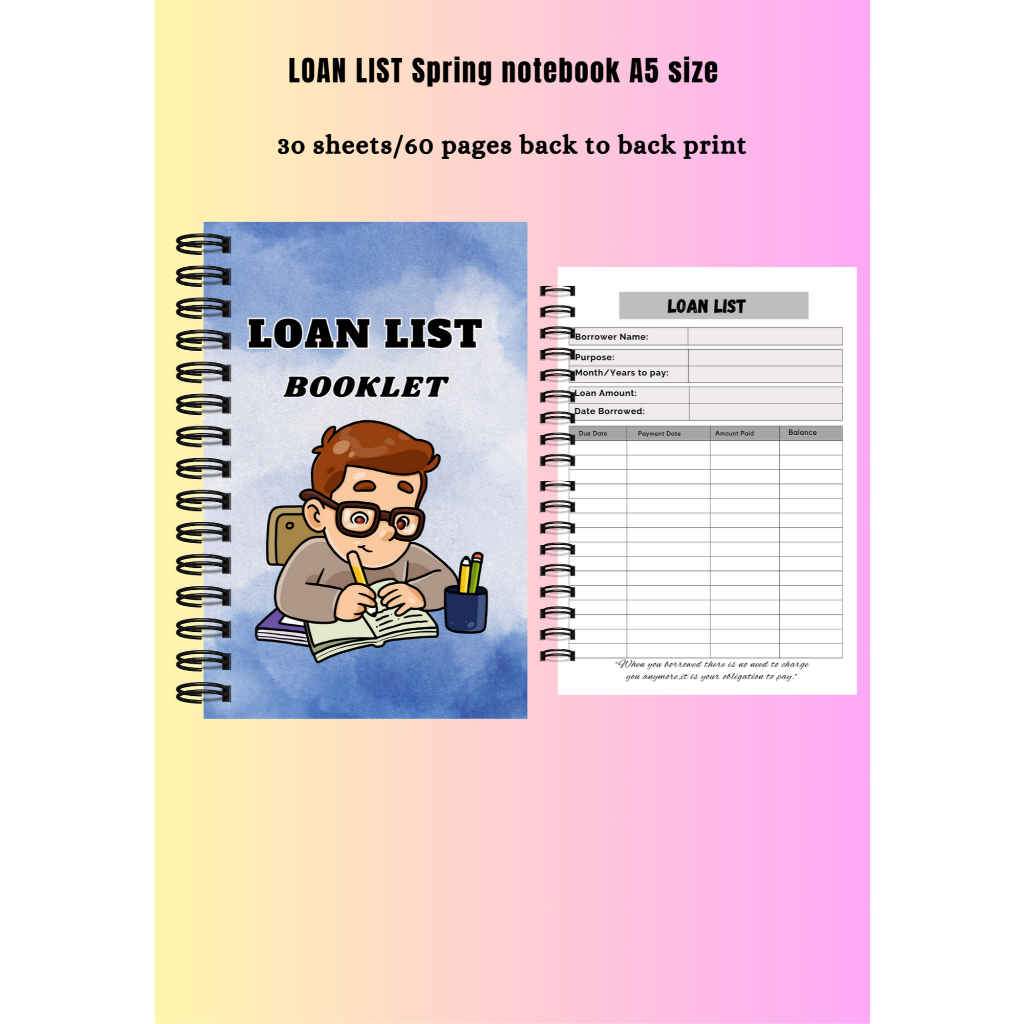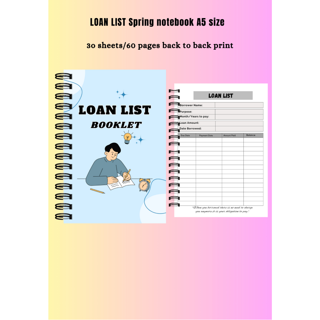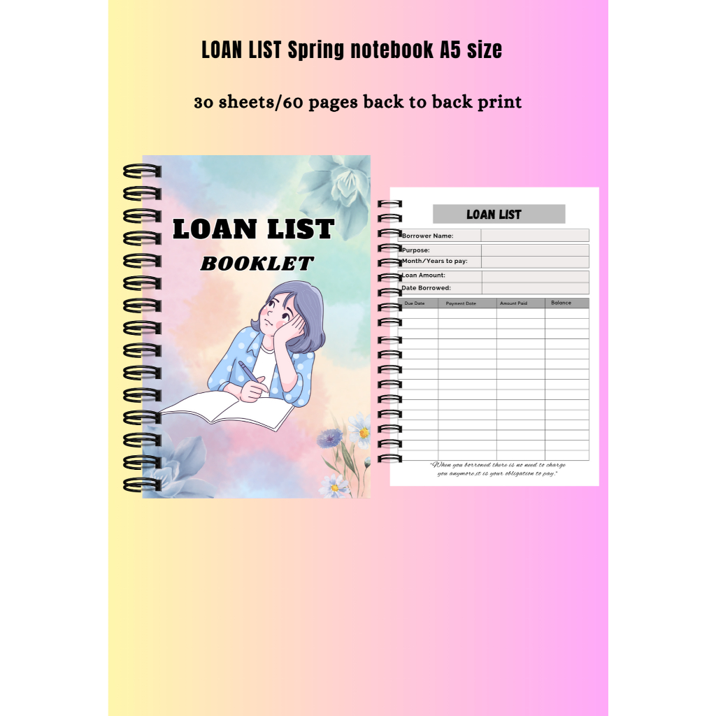 LOAN LIST SPRING NOTEBOOK A5 SIZE