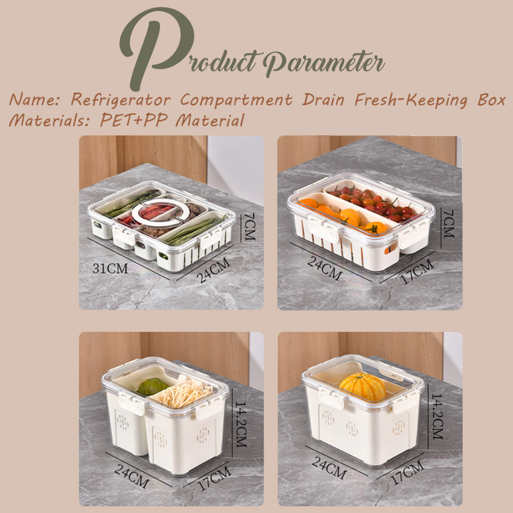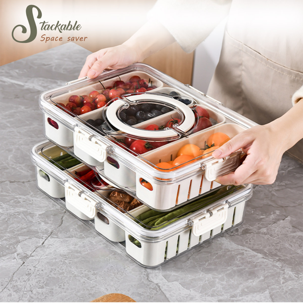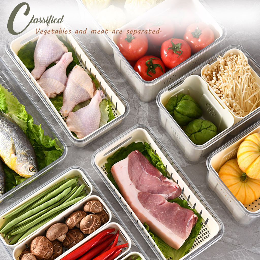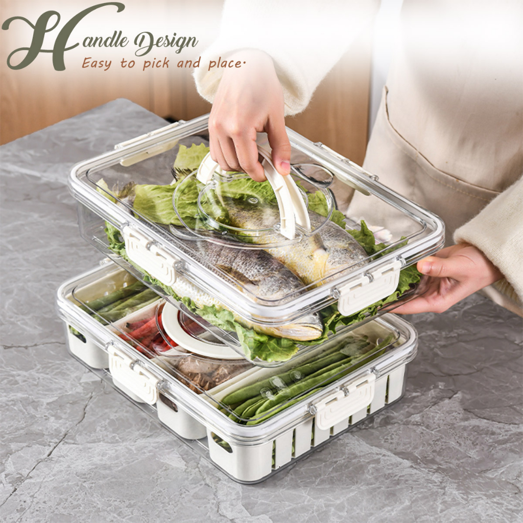 LOCAUPIN Food Container Washing Fruit Vegetable Storage Locking Lid Fridge Organizer Compartment