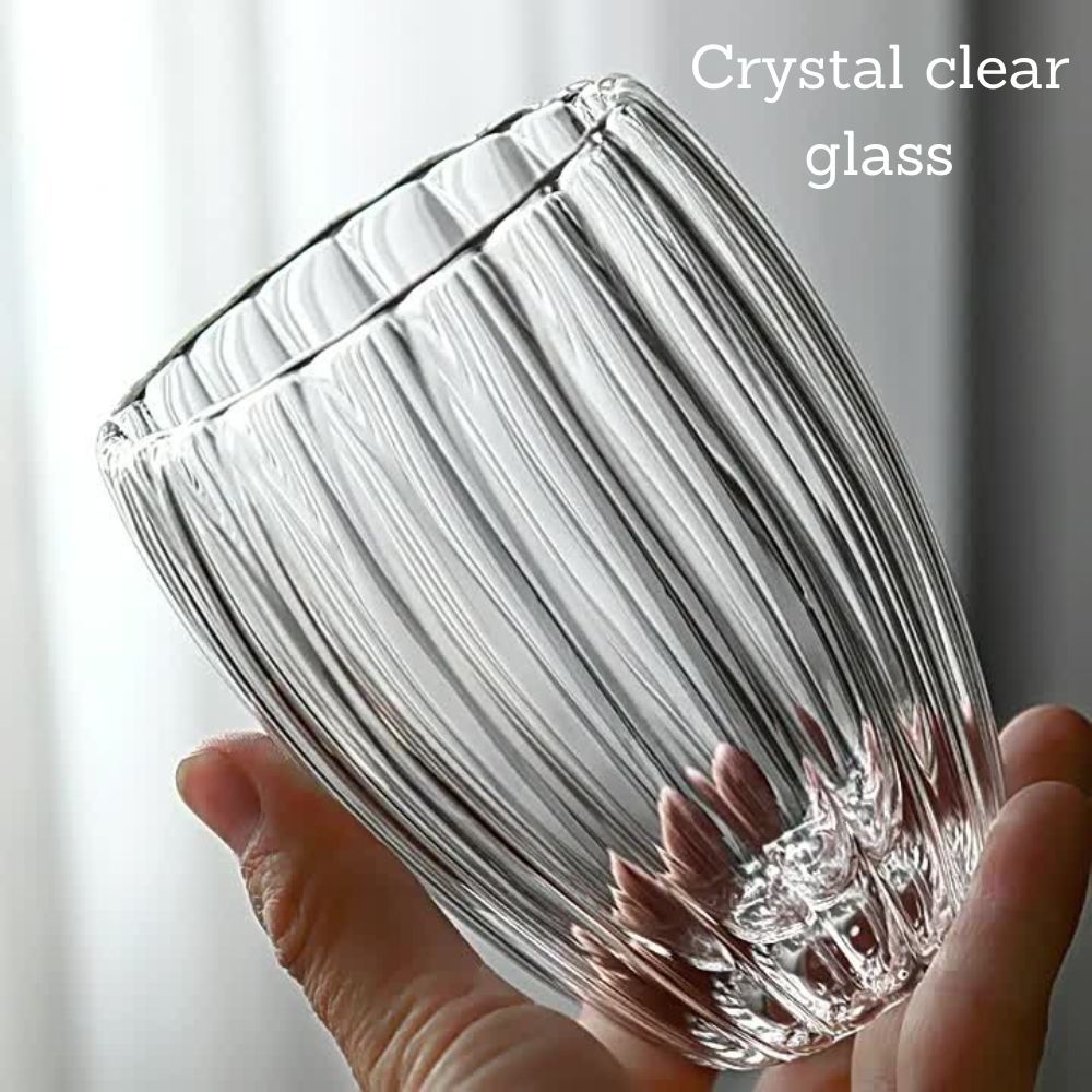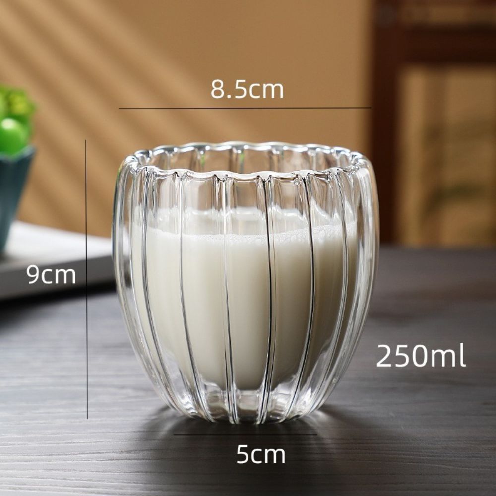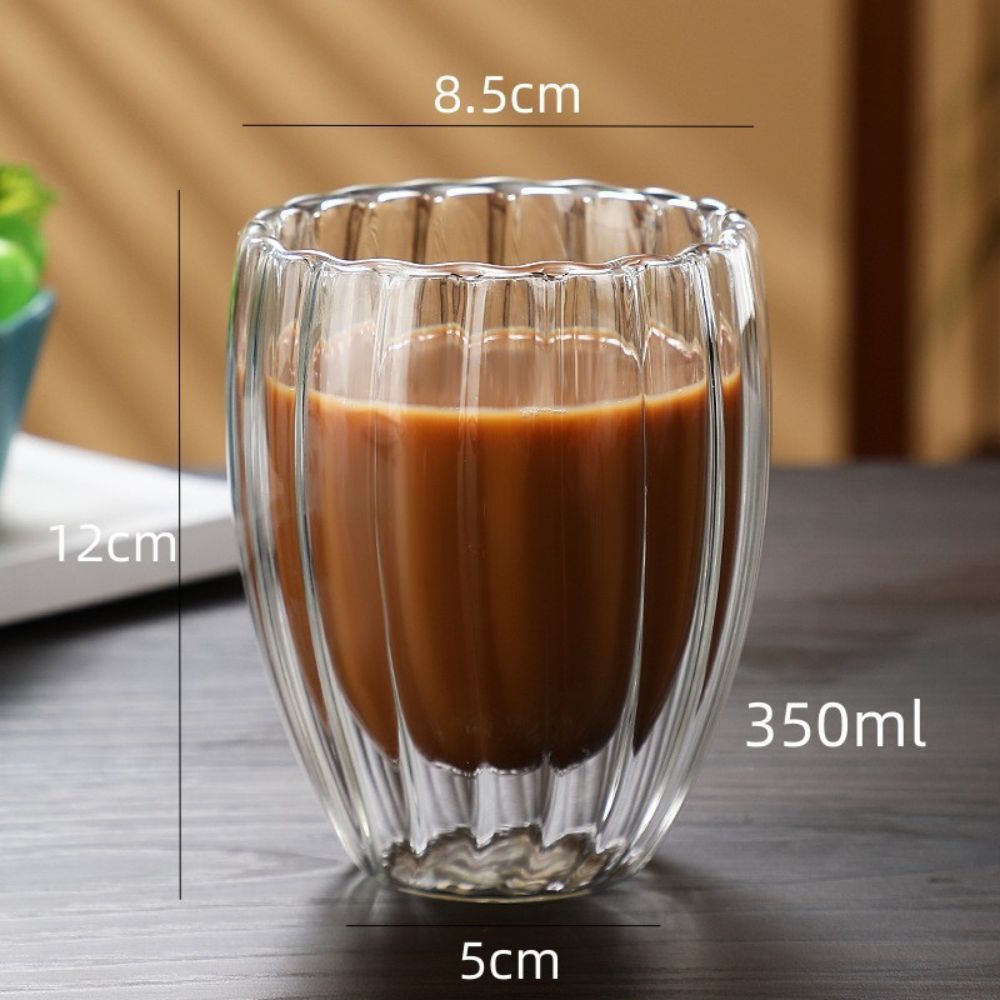 LOCAUPIN Ribbed Double Wall Glass For Hot Cold Drinks Latte Coffee Mug Classic Aesthetic Tea Cup