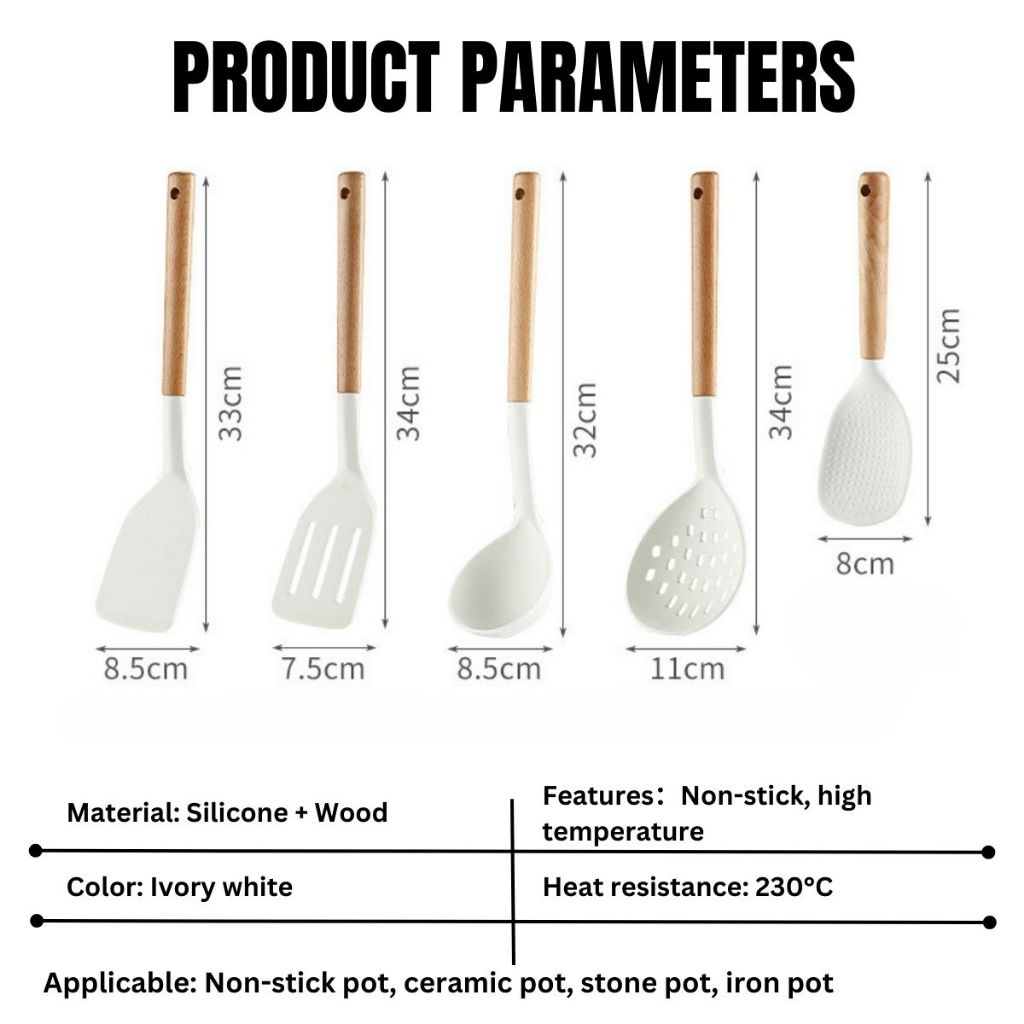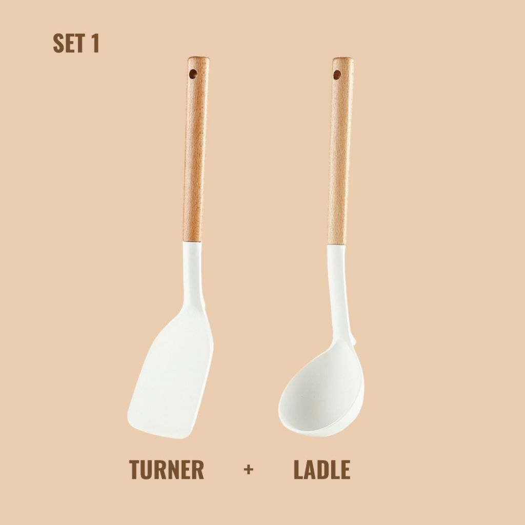 LOCAUPIN Set of Kitchen Essential Tool Silicone Cooking Utensil Wooden Handle