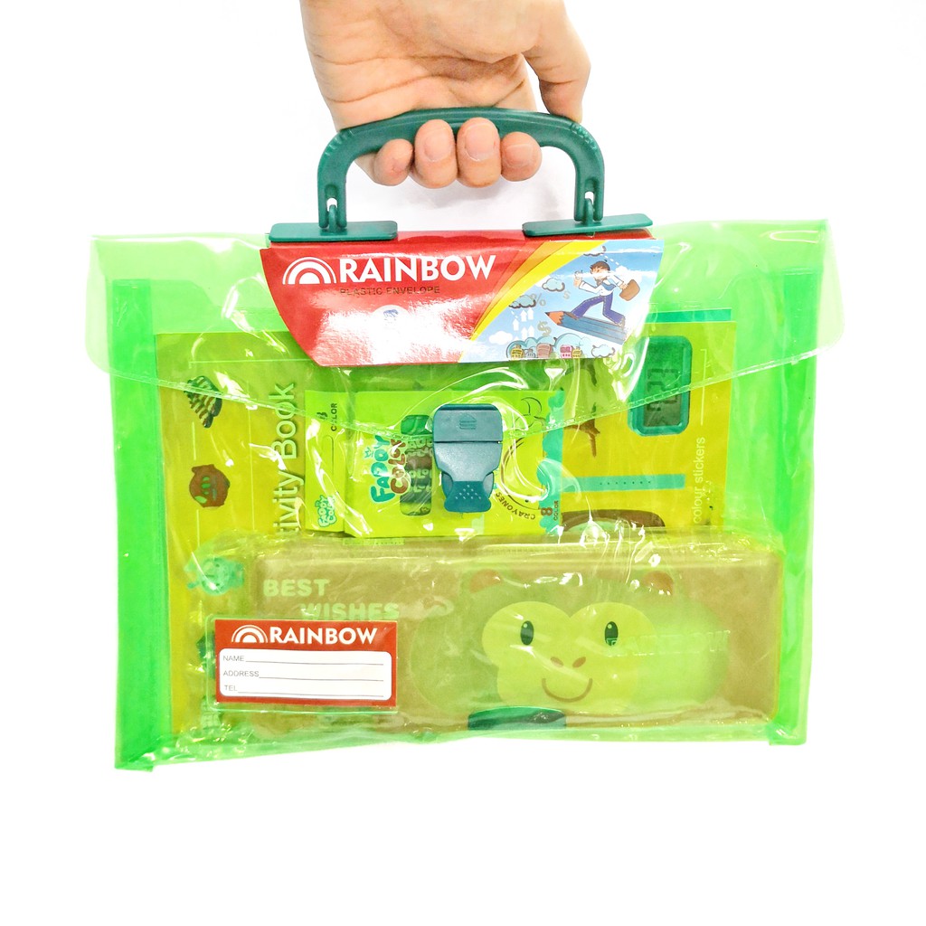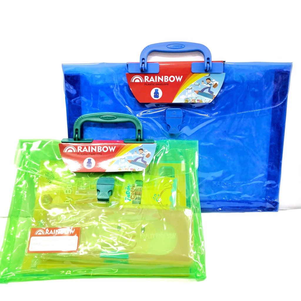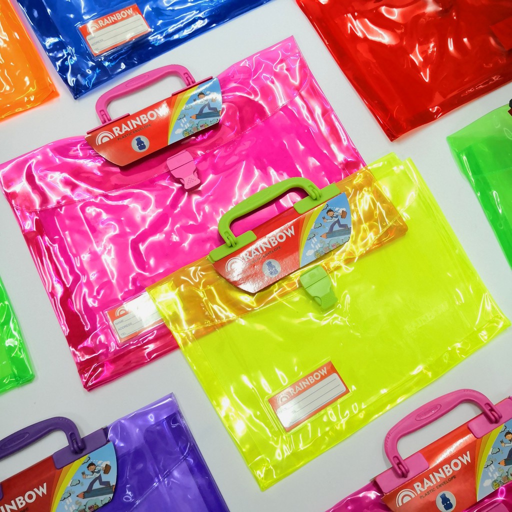 LONG RAINBOW EXPANDABLE PLASTIC ENVELOPE WITH HANDLE