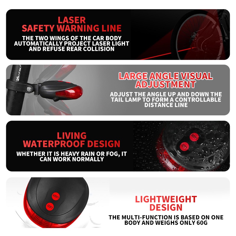 LONGGO Laser Back Light for Bike Tail Light Cycling MTB Blinker Waterproof Flashing Lamp