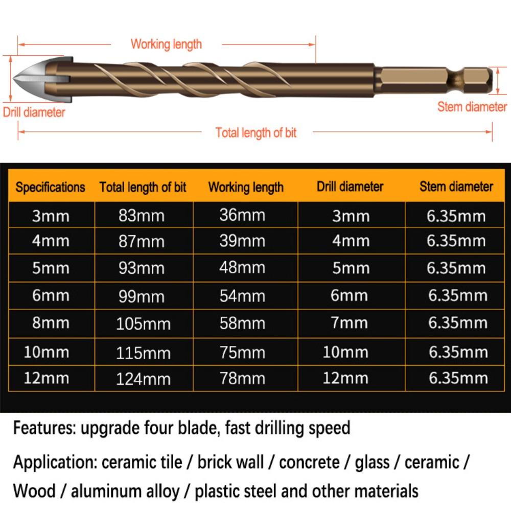 LONNGZHUAN Cross Hexagon Tile Drill, Multifunctional Four-edged Cross Tile Drill Bit, Hole Opener 3-12mm Alloy Drill Bit Ceramic