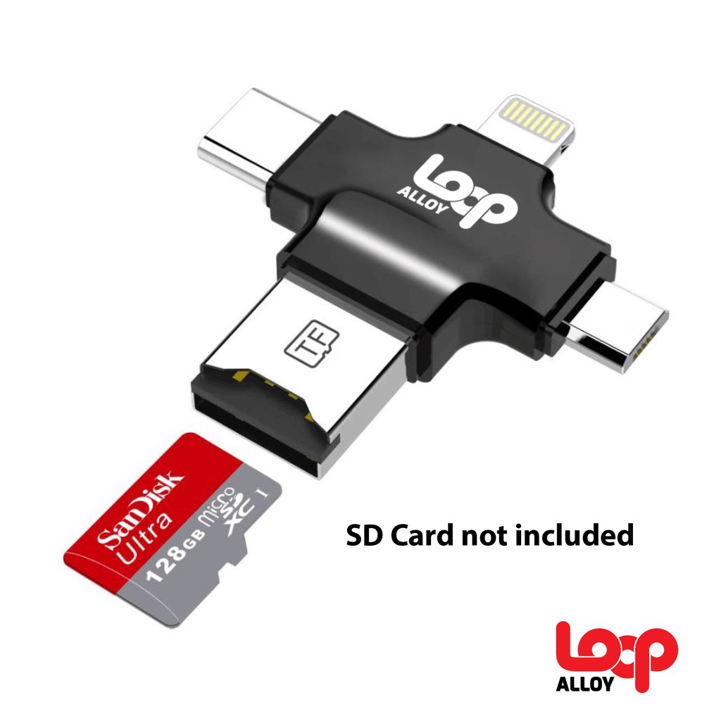 Loop ALLOY 4 In 1 Connector OTG Card Reader (Black)