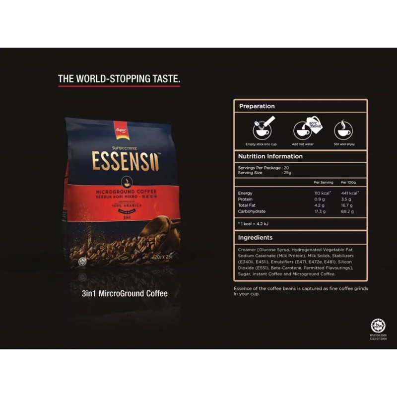 LOR Essenso Microground Coffee 3in1 Coffee Beans 20 sachets x 25g (500g)=1 pack