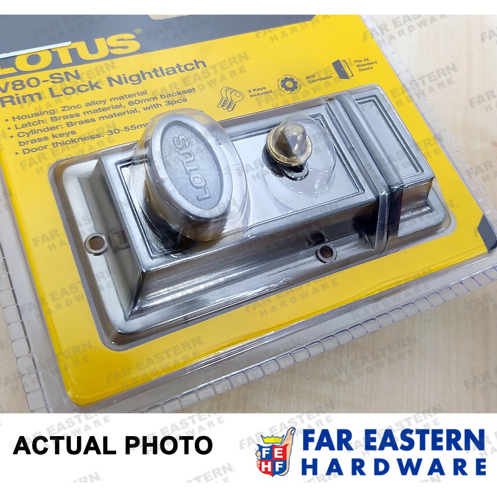 LOTUS Rim Door Lock Night Latch Nightlatch V80-SN LTVAR