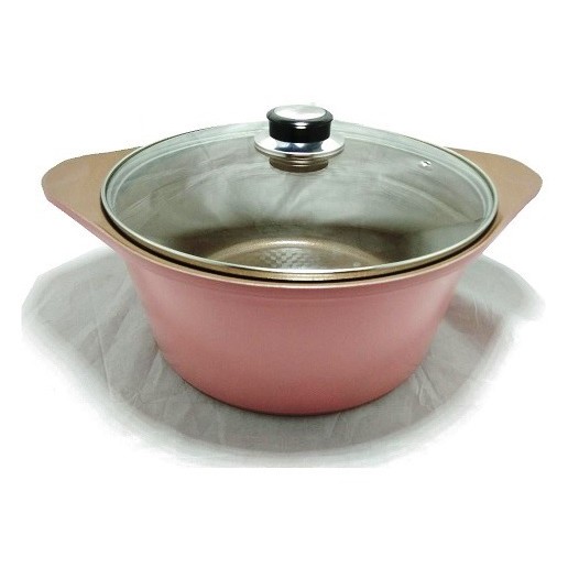 LOWENTHAL Ceramic Coating 2 Handle Casserole Pan with Glass Lid 24cm (PINK)