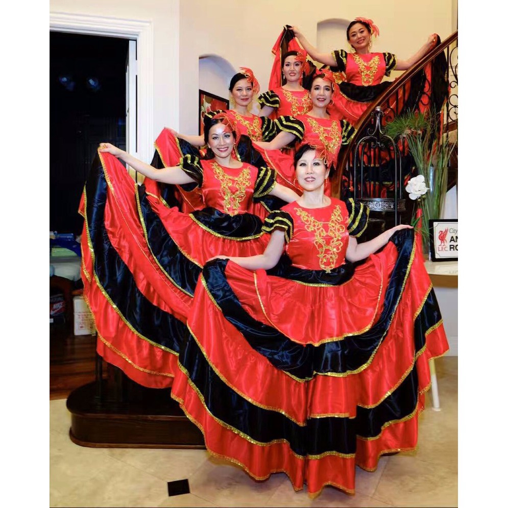 Lolanta Women Red Spanish Flamenco Dress Big Swing Maxi Birthday Party Dresses Belly Dance Costume Attach Headpiece