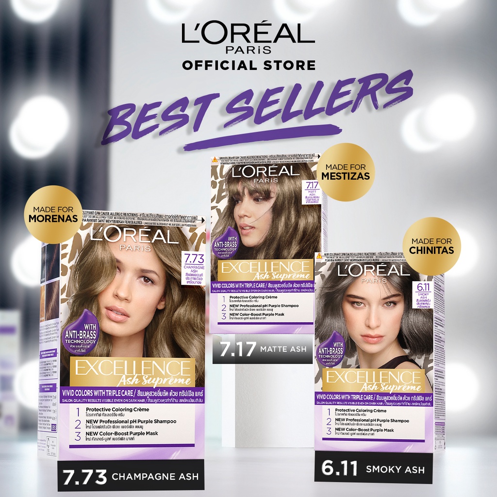 LOreal Paris Excellence Ash Supreme Haircolor 7.73 x 2 with Purple Shampoo - Hair Dye Permanent