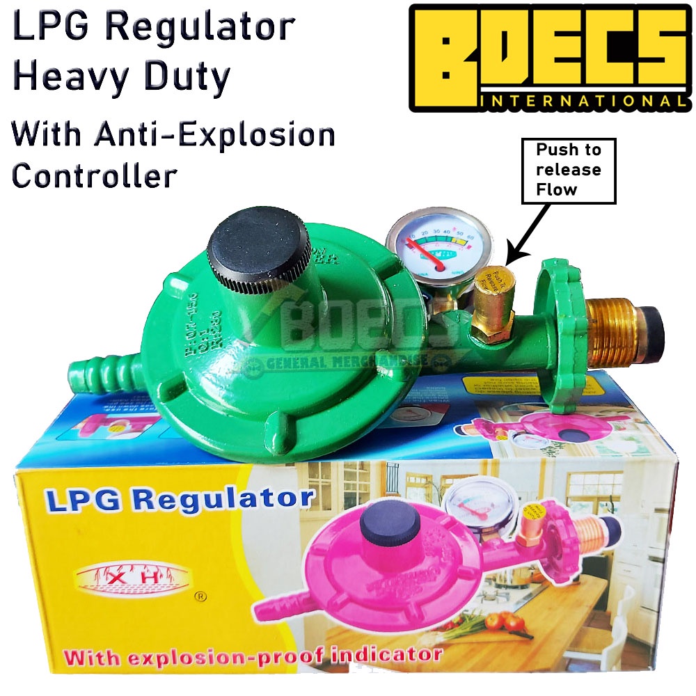LPG Regulator with gauge and safety device Push Button controller Heavy Duty by bdecs