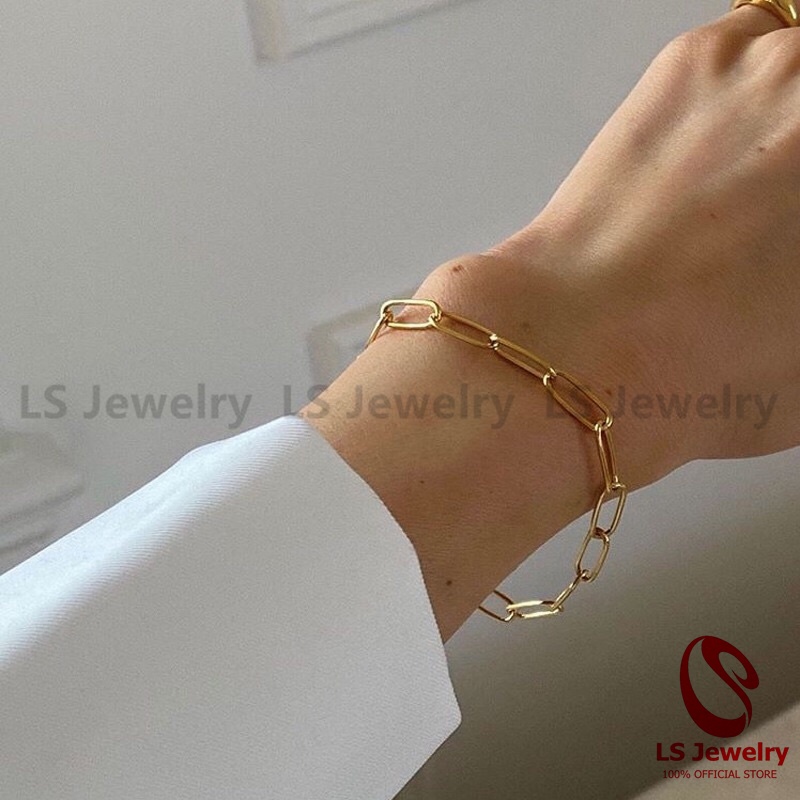 LS Jewelry 18k gold-plated stainless steel rectangular necklace/bracelet accessories 2500s