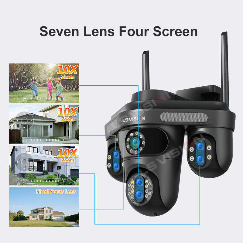 LS VISION 35Mp 7 Lens 4 Screen 3 10X Optical Hybrid Zoom PTZ WIFI CCTV Camera Humanoid Detection Aut