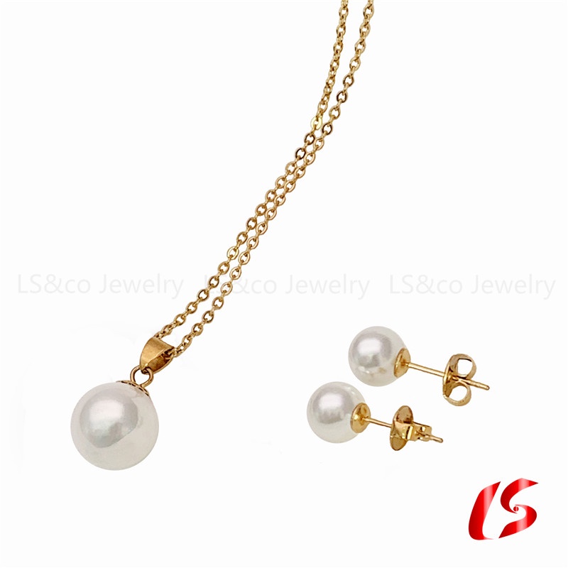 LS jewelry 18K Gold Necklace Earring Opal Pearl Jewelry Set for Women Set 64#