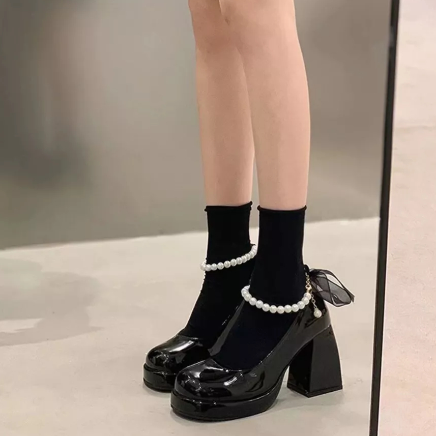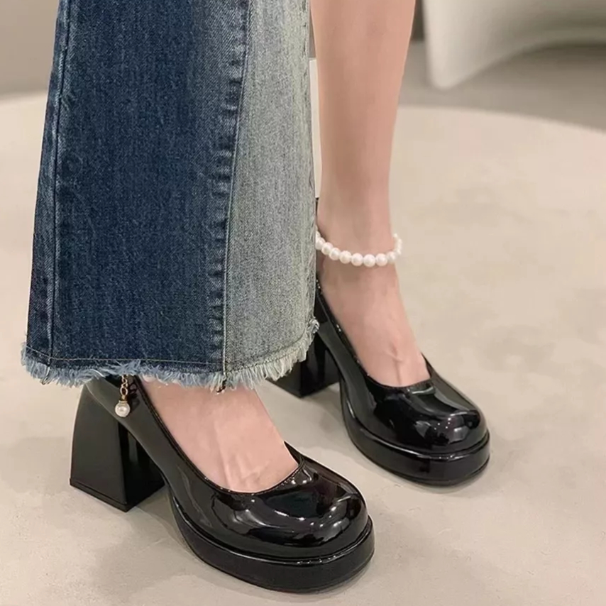 LSINGERS Black Mary Jane Shoes For Women With 4 Inches Heels Leather Shoes With Block School Shoes With Shoe Box