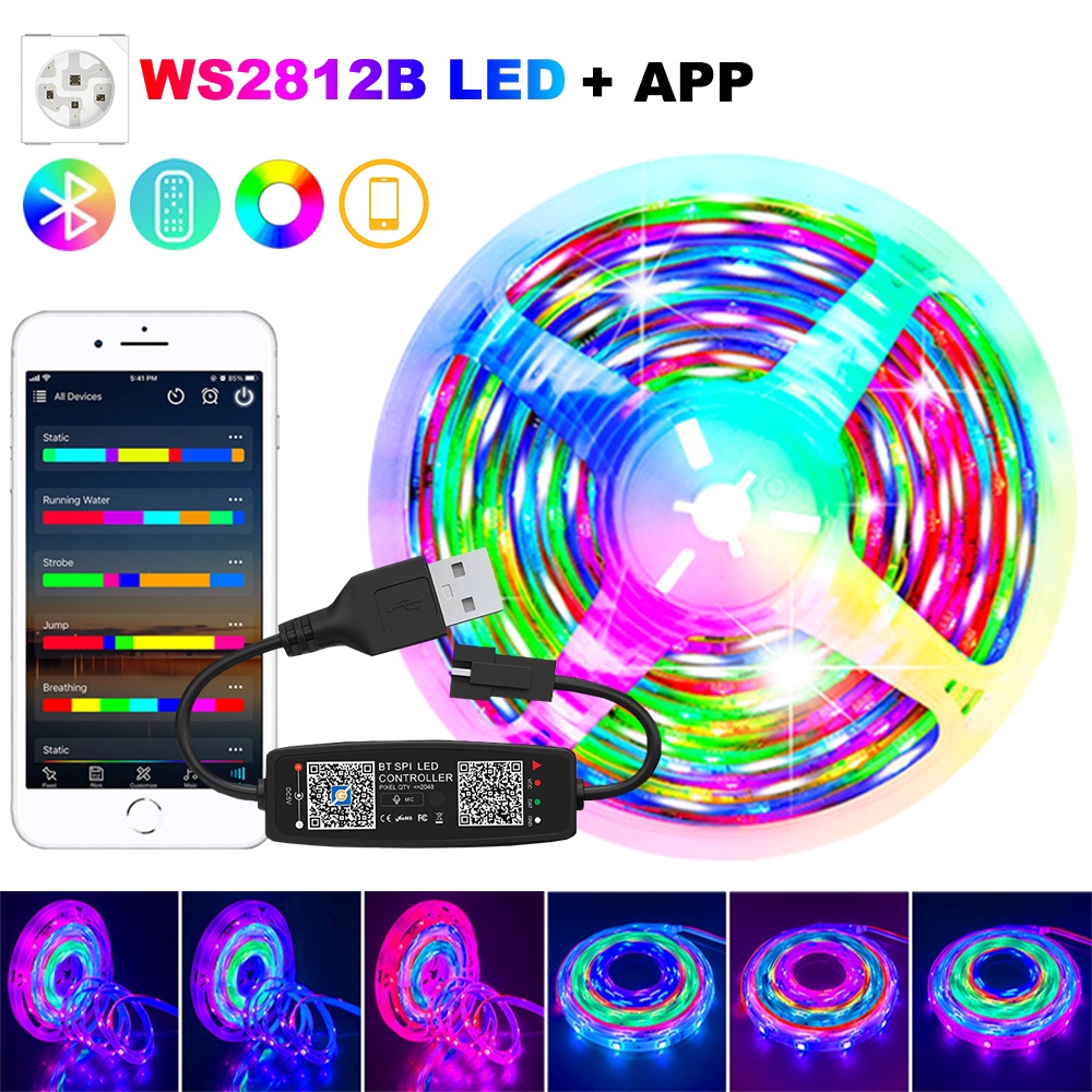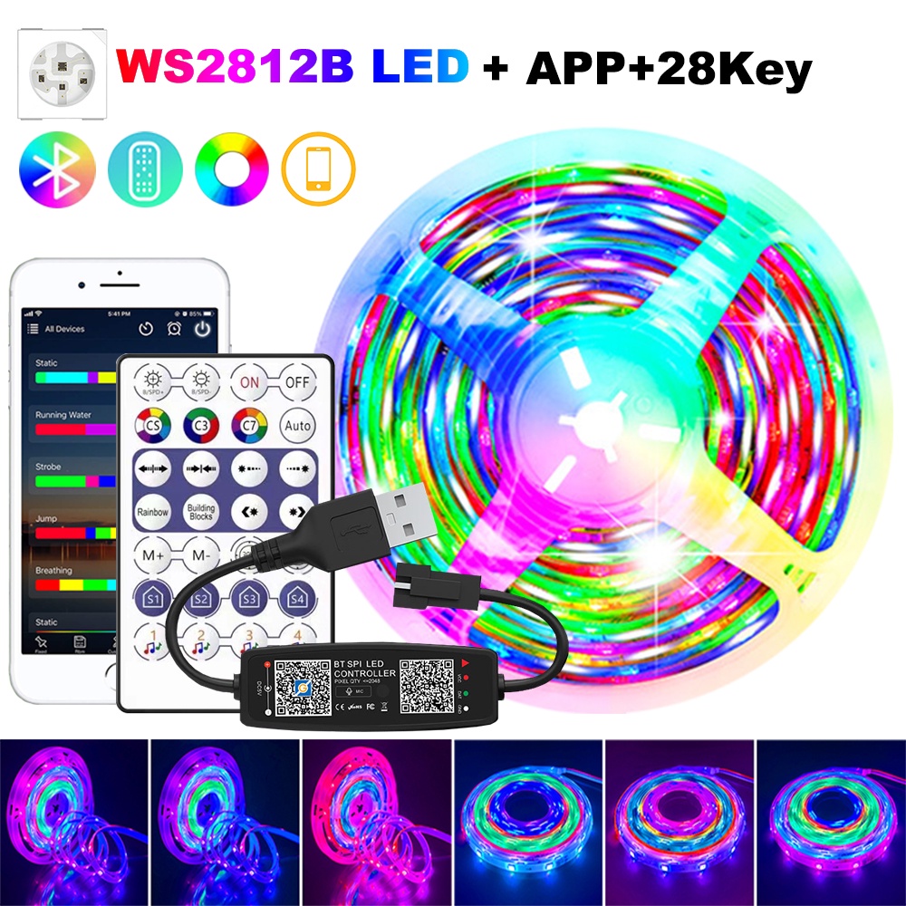 LTG-GEE Bluetooth USB LED Strip Light WS2812B RGBIC 5050RGB Infrared Remote Control Flexible Diode Lamp Tape 5V 16 Color TV Desktop BackLight