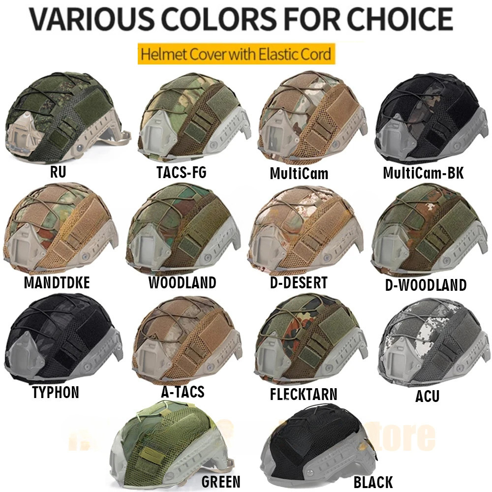 LUC Jungle Camouflage Helmet Cover for Fast MH PJ BJ OPS-Core Helmet Compatible Cycling Helmet Cover Multi Camera with Bungee Cord