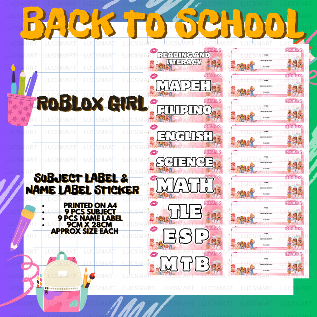 LUCSMART Fast shipping - NEW DESIGN ROBLOX GIRL PINK THEMED Subject and Name Label Sticker