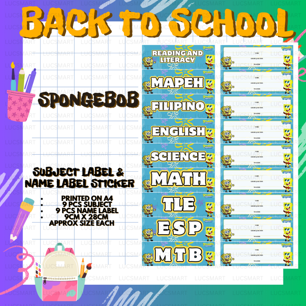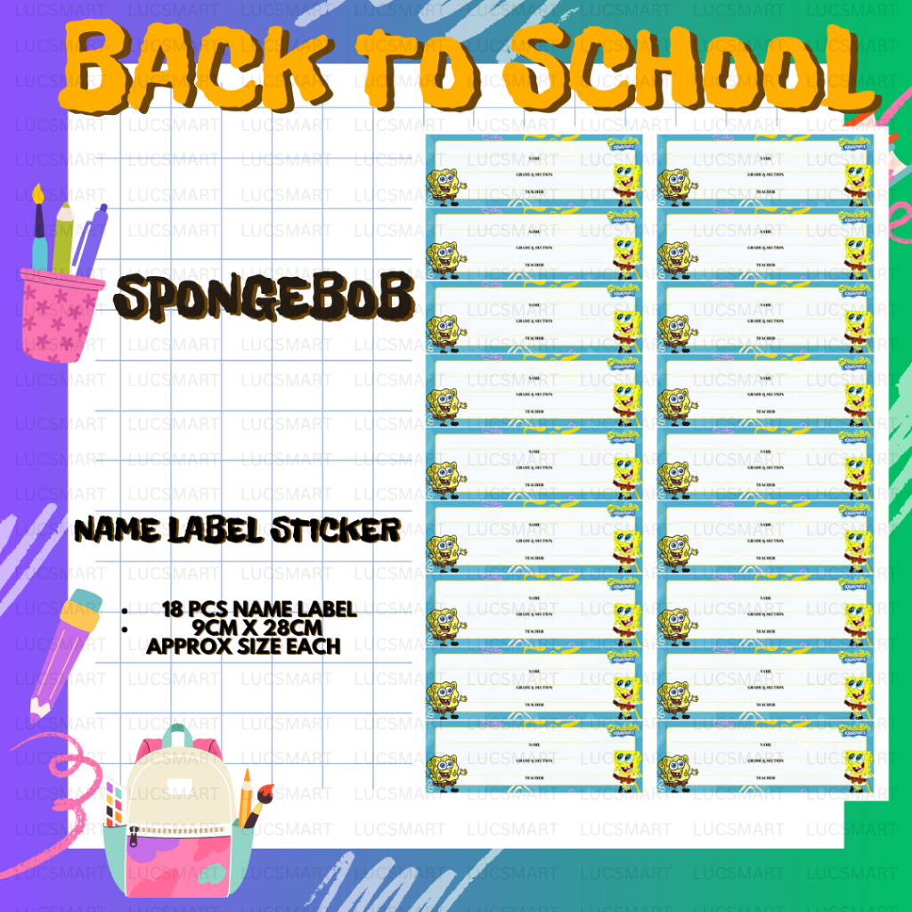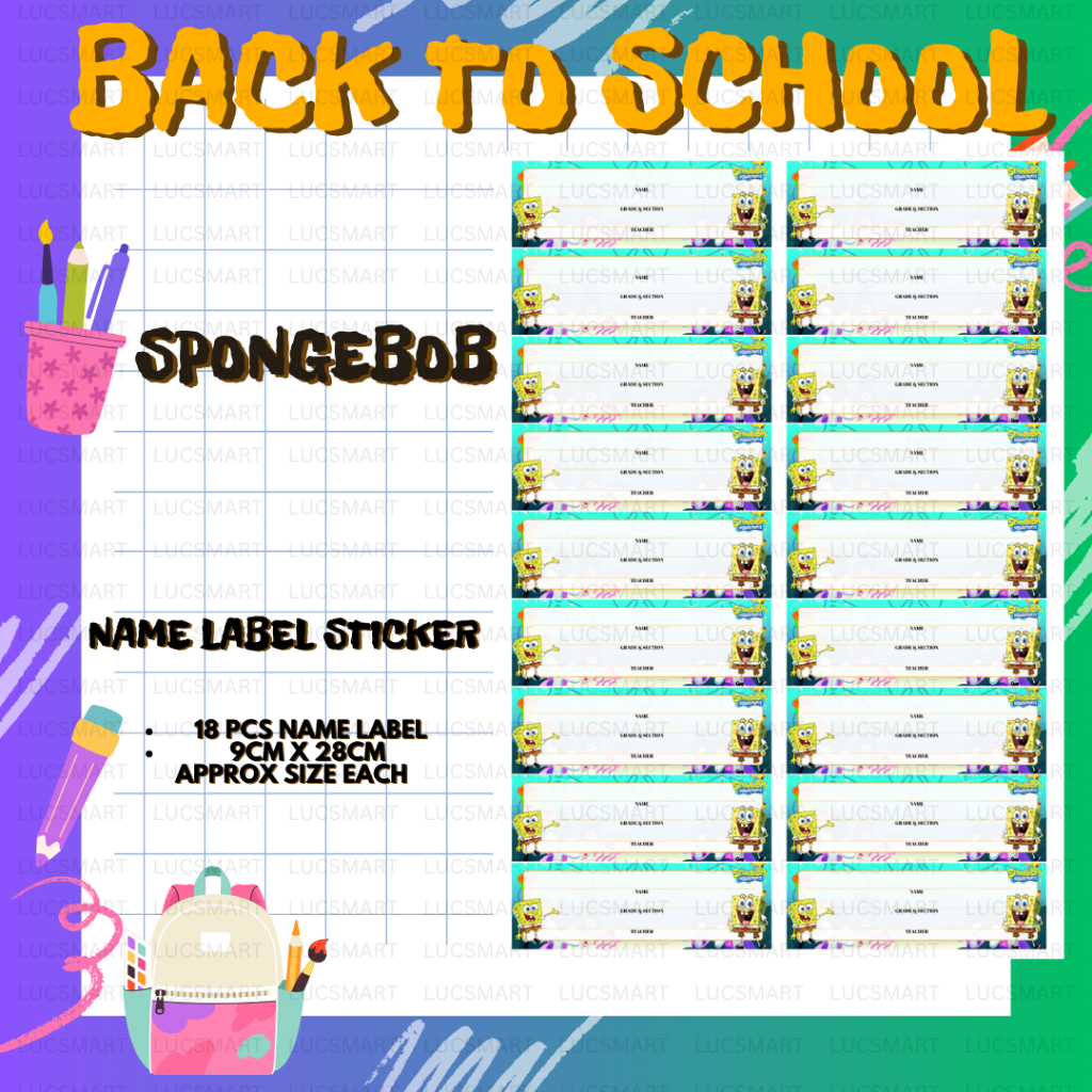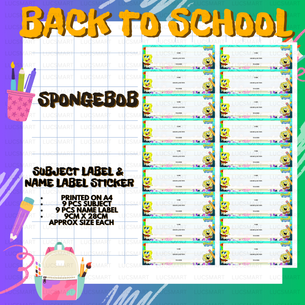 LUCSMART Fast shipping - NEW DESIGN SPONGEBOB THEMED Subject and Name Label Sticker for notebooks