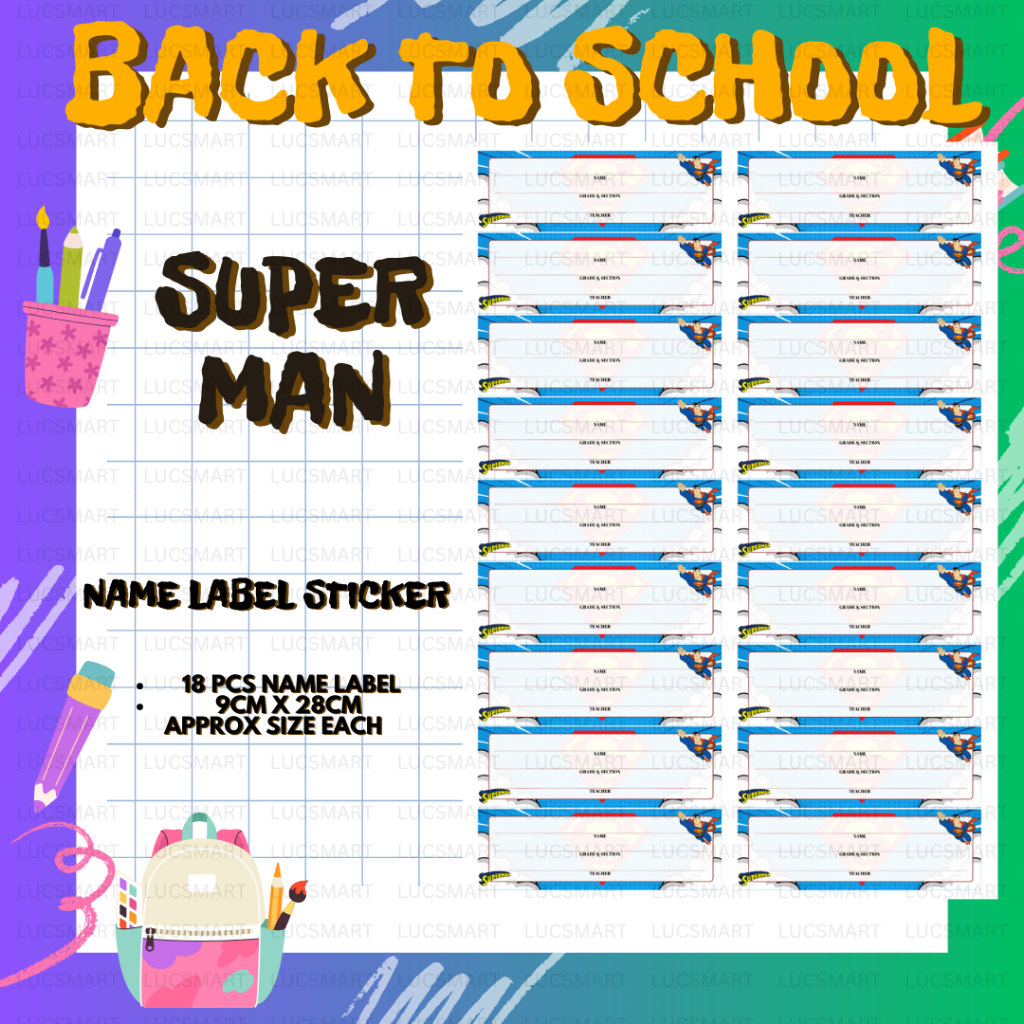 LUCSMART Fast shipping - NEW DESIGN SUPERMAN THEMED Subject and Name Label Sticker for notebooks