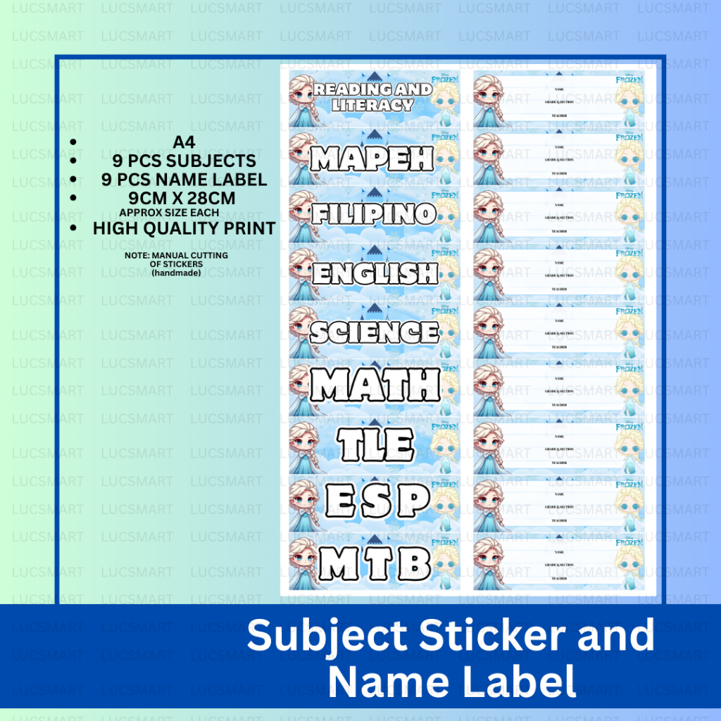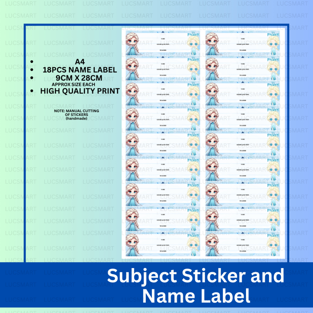 LUCSMART Fastshipping -FROZEN / ELSA THEMED Subject and Name Label Sticker for notebooks / books