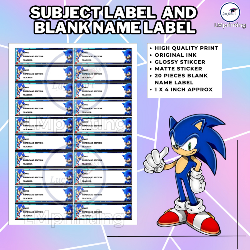 LUCSMART Prints NEW DESIGN SONIC Inspired Sticker and Name Label Set with 10 Subjects, Matte