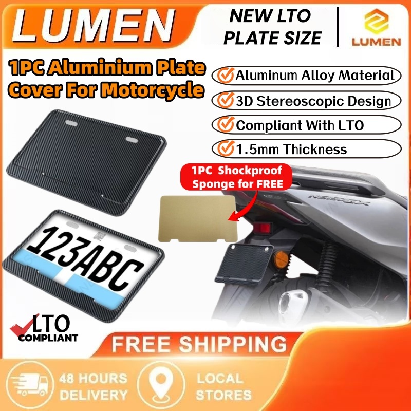 LUMEN 1Pc Motorcycle Plate Holder Protector Plate Cover Universal New LTO Size Plate Number Frame