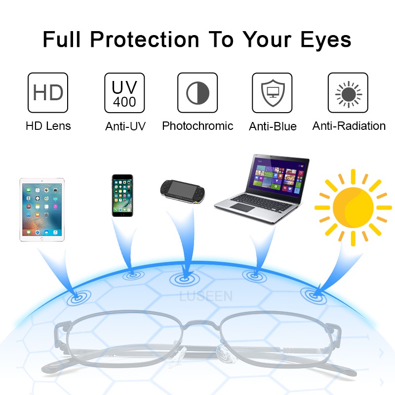 LUSEEN Anti Radiation Eyeglass For Woman And Men Photochromic Replaceable Lens Eye Glasses Anti Rad Glasses AG2224