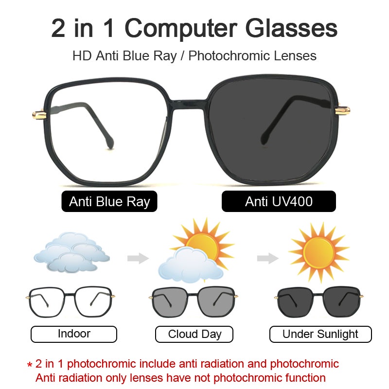 LUSEEN Photochromic Anti Radiation Eyeglass For Woman Men TR Eyeglass Frame Replaceable Lens Glasses AG2229
