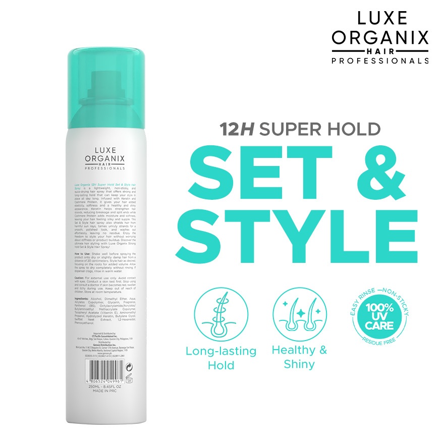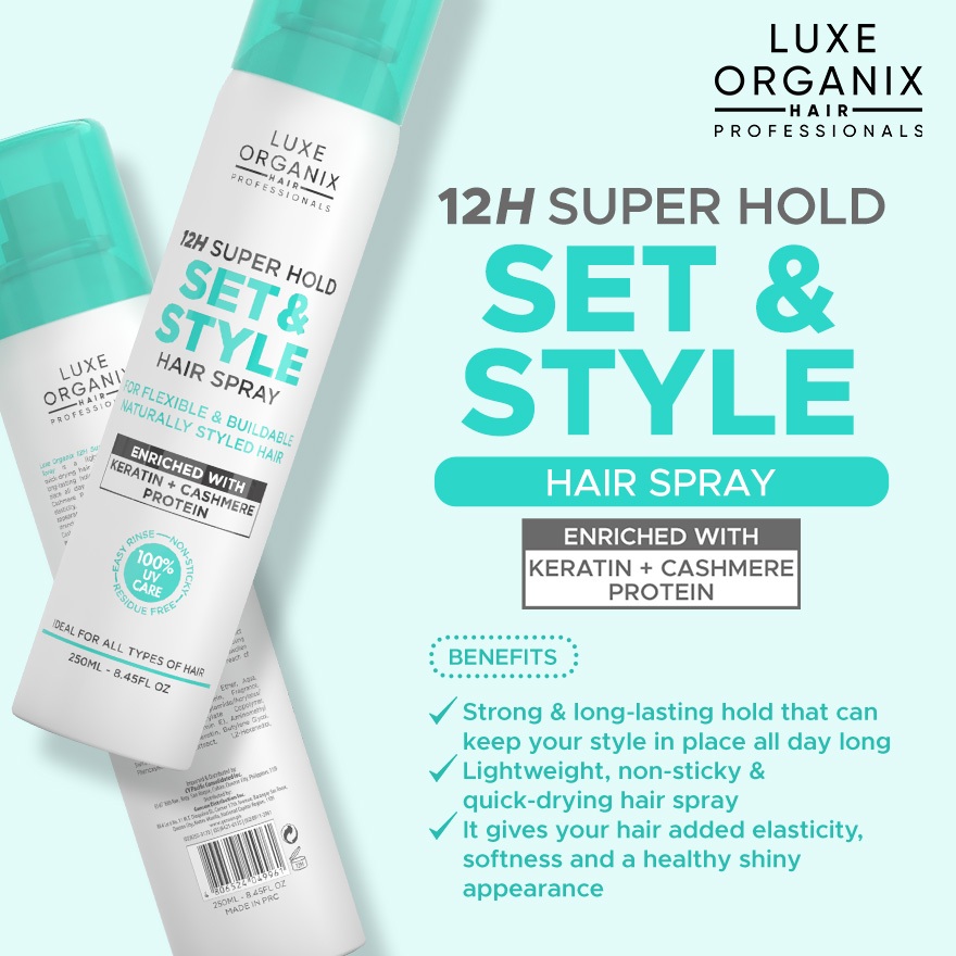 LUXE ORGANIX 12H Strong Hold Set & Style Hair Spray 250ml