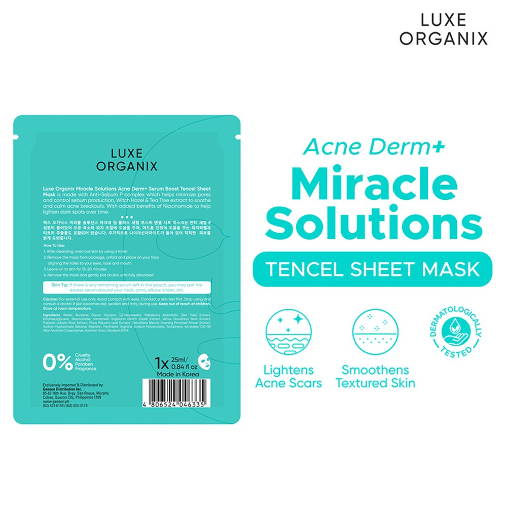 LUXE ORGANIX Miracle Solutions Acne Derm+ Tencel Sheet Mask 25g