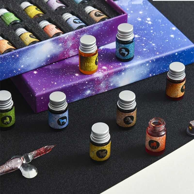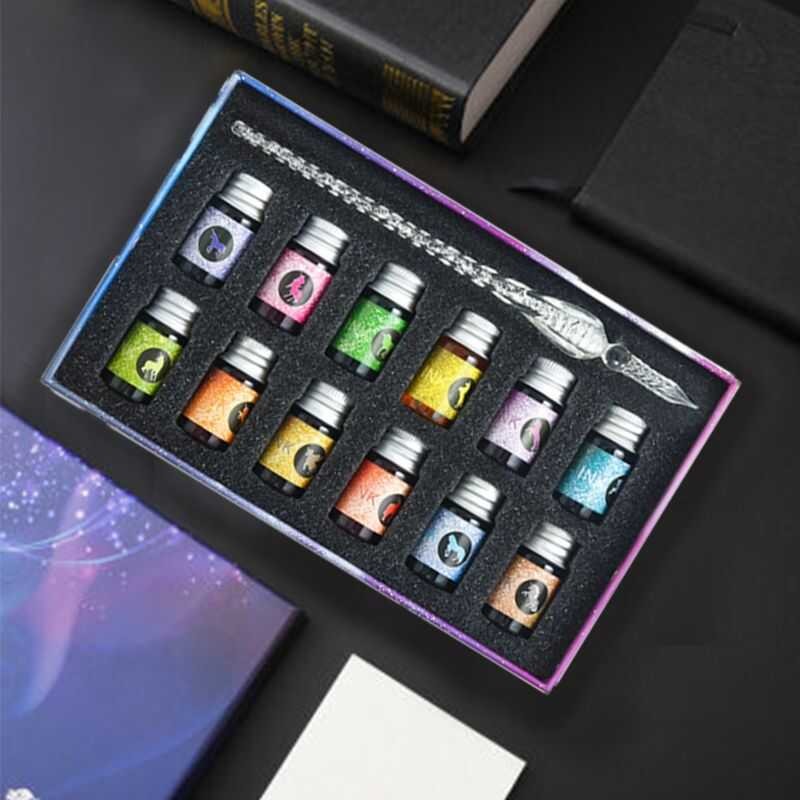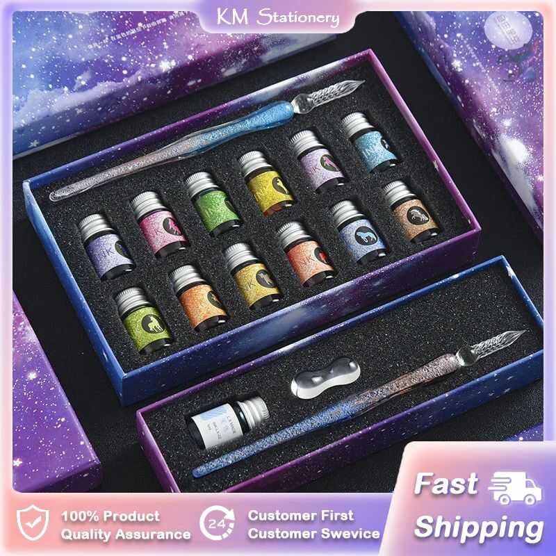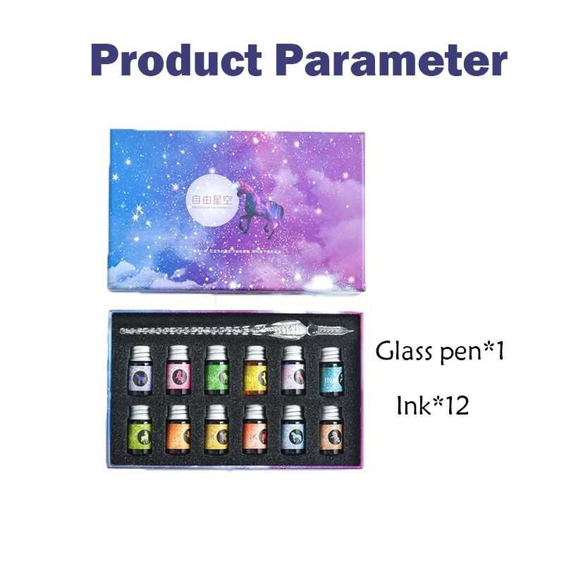 LY 13Pcs/Set Signature Star Crystal Student Glass Dip Pen Gradient Gifts Set Na May 12 Color Inks