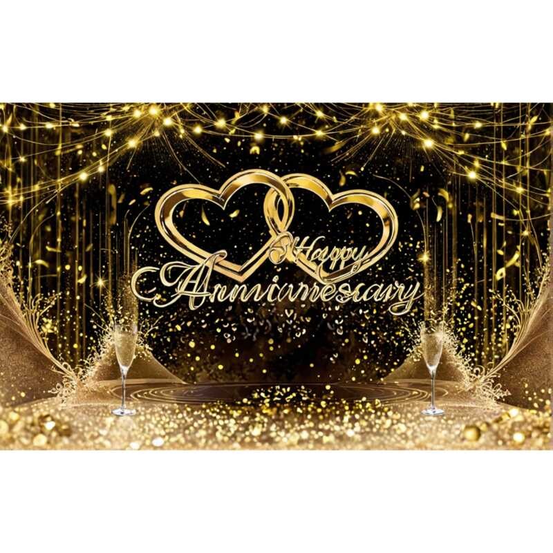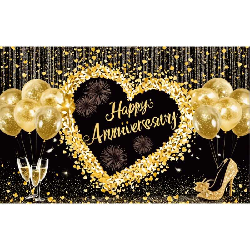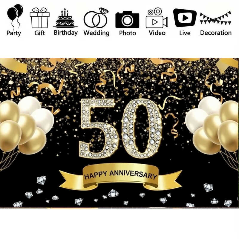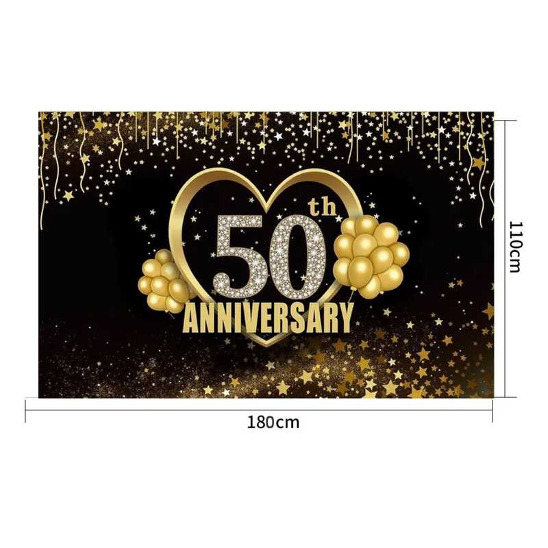 LY 180*110Cm Happy 50Th Anniversary Backdrop Banner Gold Them Balloon Man Woman Wedding Anniversary
