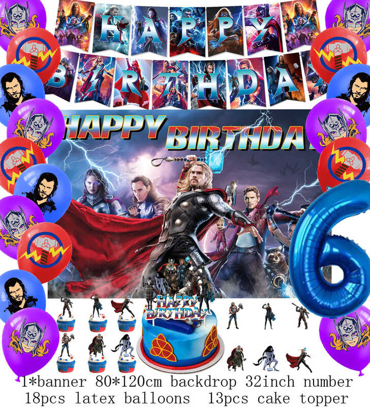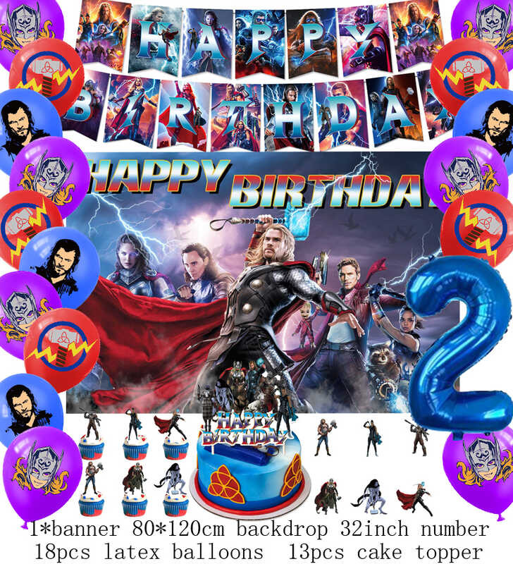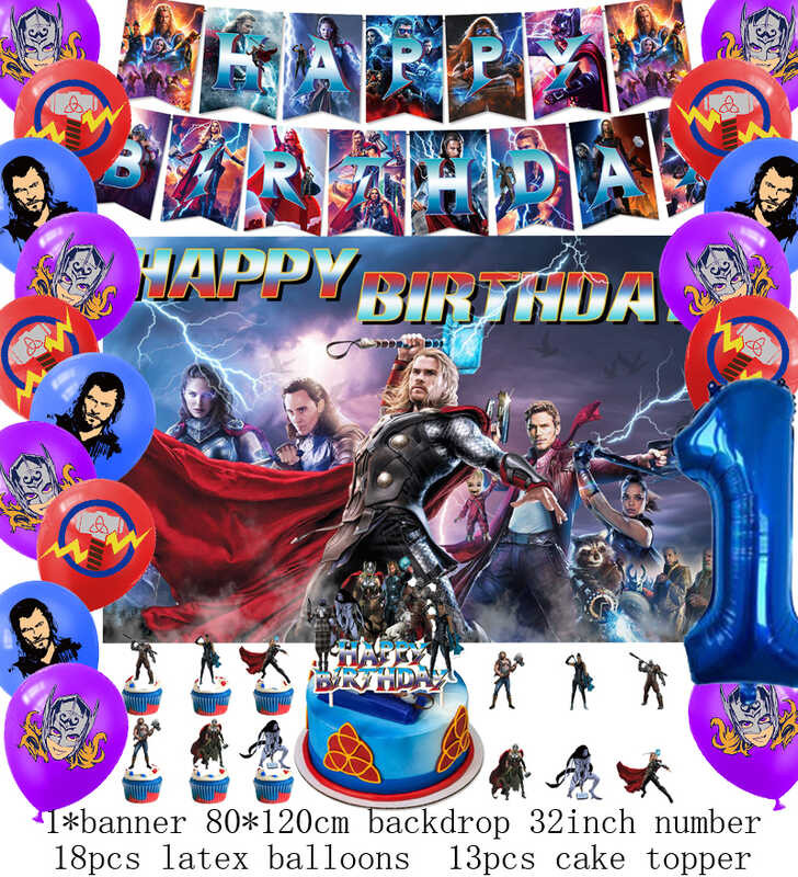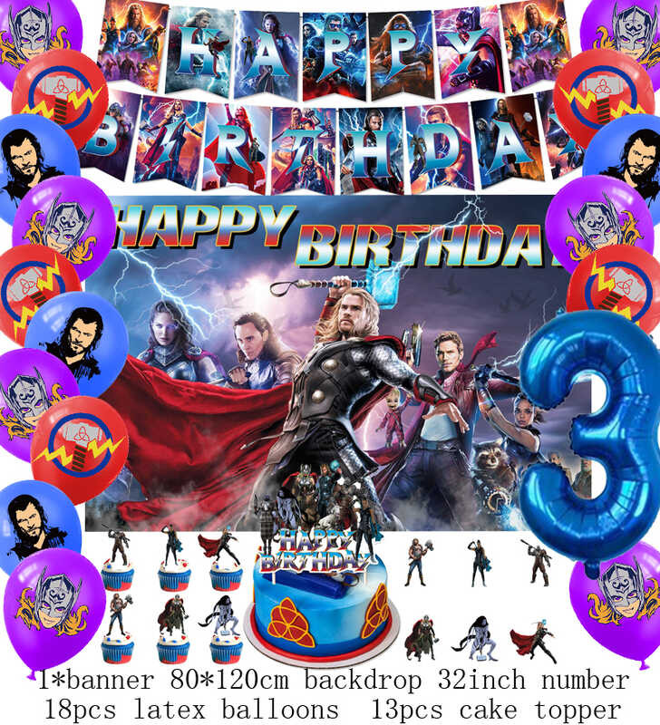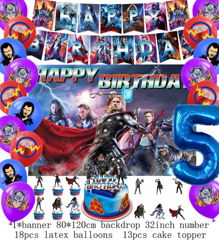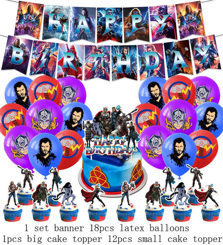 LY Hero Theme Thor Birthday Party Decoration Thorl Balloon Backdrop Banner Cake Topper Baby