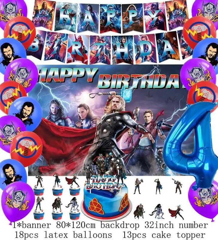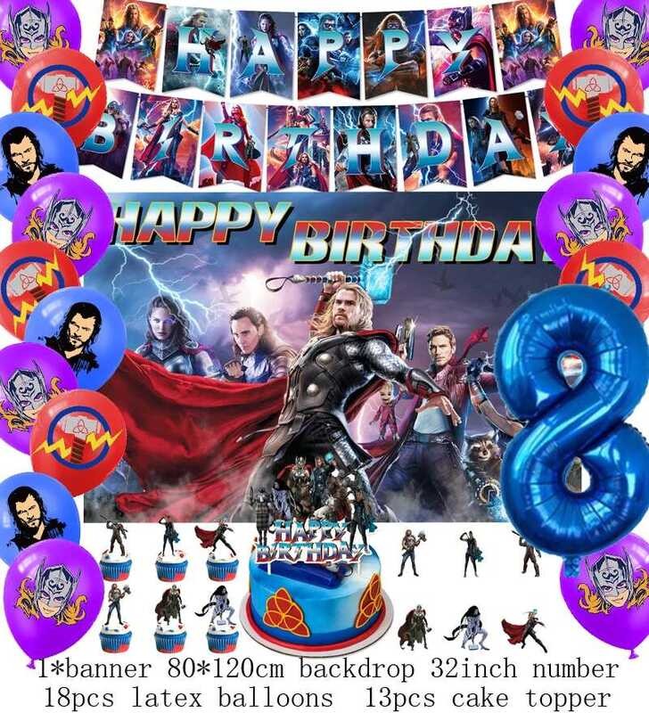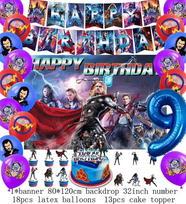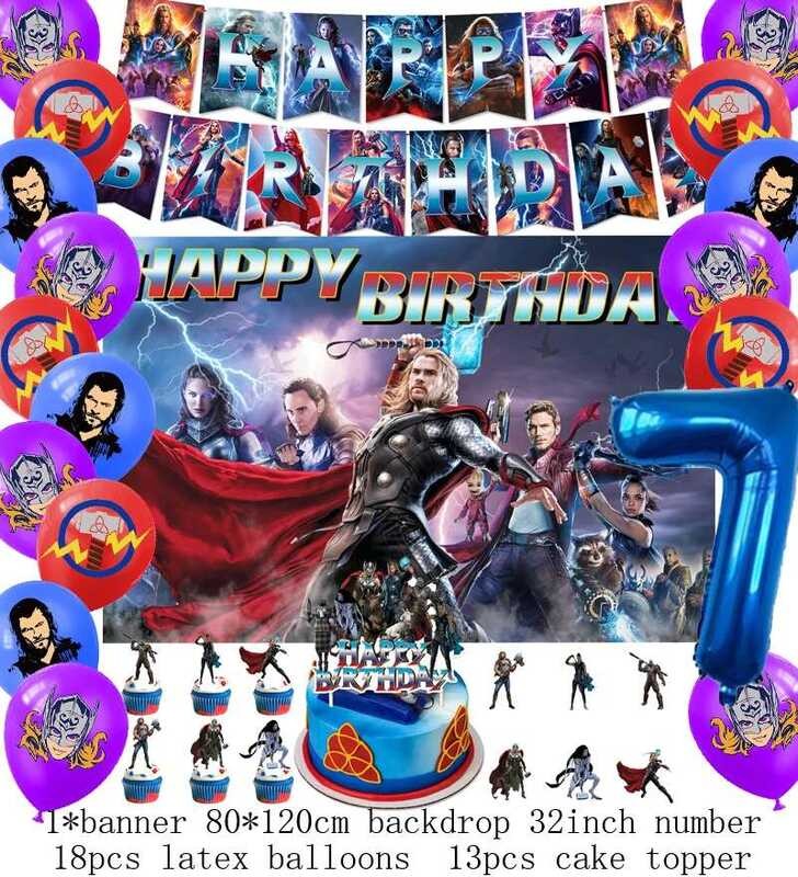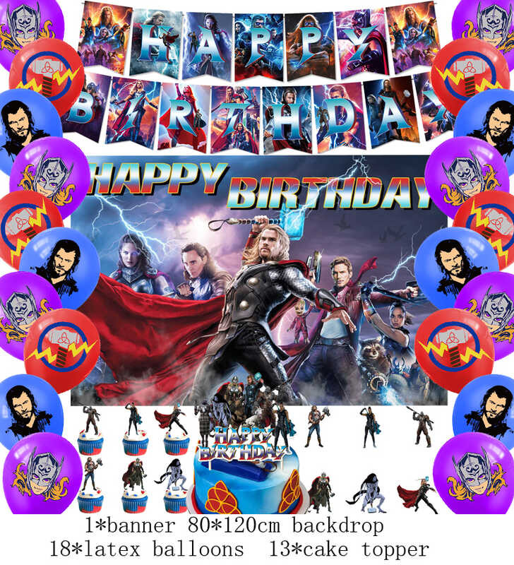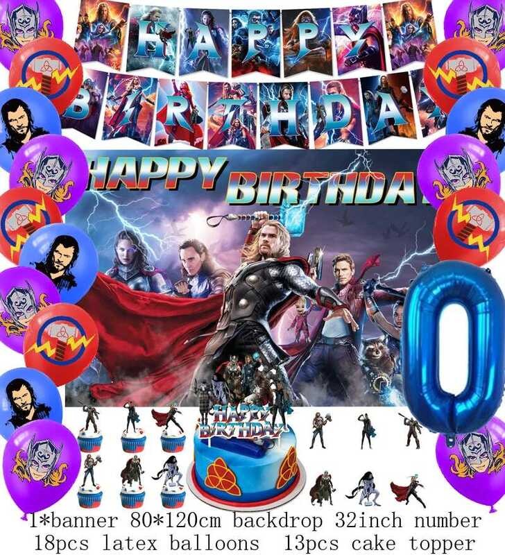 LY Hero Theme Thor Birthday Party Decoration Thorl Balloon Backdrop Banner Cake Topper Baby