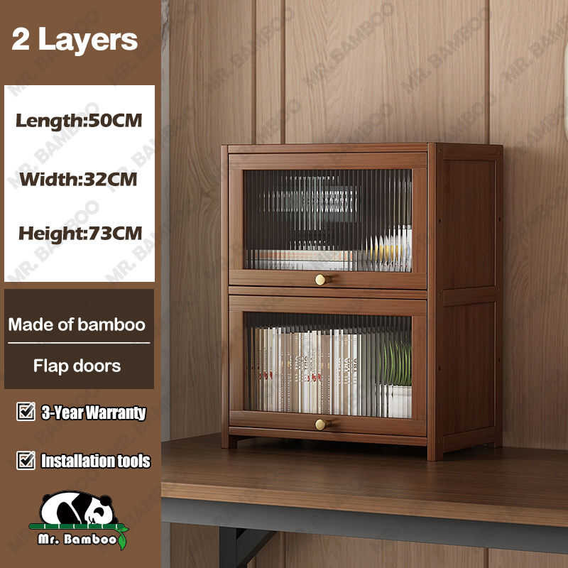 LY Mr.Bamboo Display Storage Bookshelf Bamboo Book Shees Organizer Bookcase Locker Kitchen Cabinet