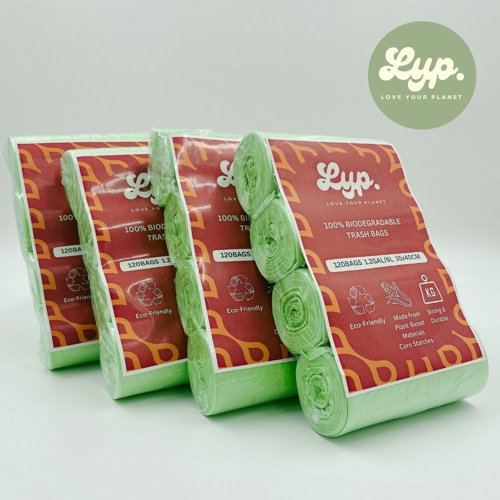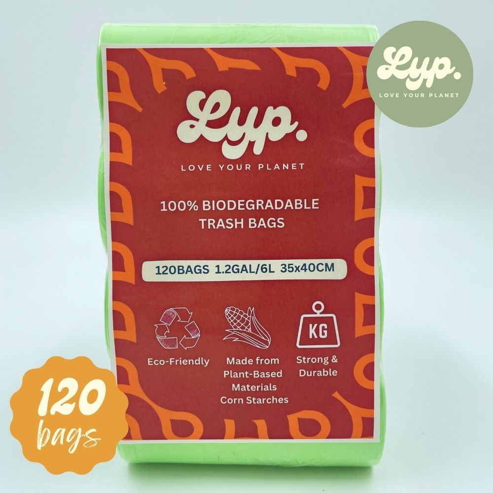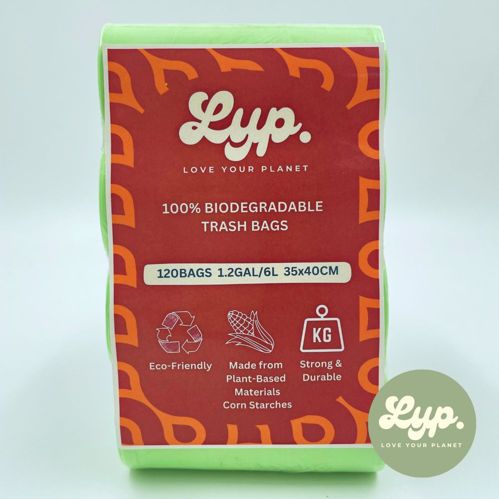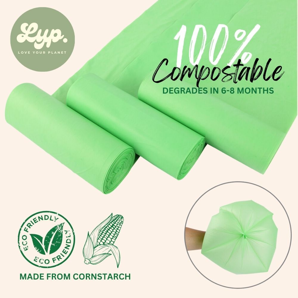 LYP 100% Compostable Cornstarch Garbage Bag / Trash Bag for 6L / 35x40cm / 4 Rolls 120 Bags