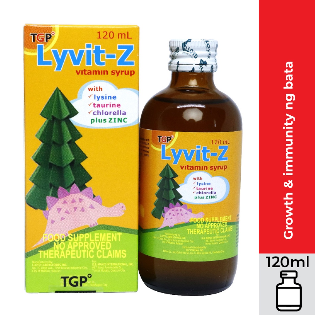 LYVIT-Z TGP Multi-Vitamins + Lysine + Chlorella Growth Factor (CGF) 120ml Syrup 1 bottle for kids