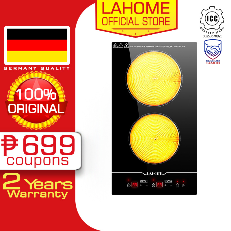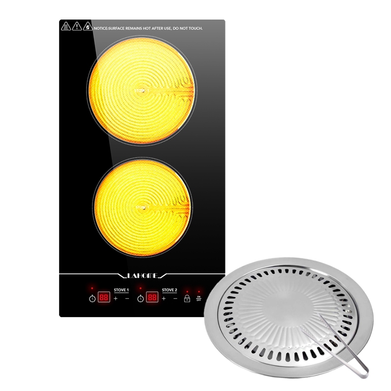 LaHome Infrared Stove 2 Burner Stove Top Electric Cooktop Buit-in Ceramic Glass Timer Non Induction