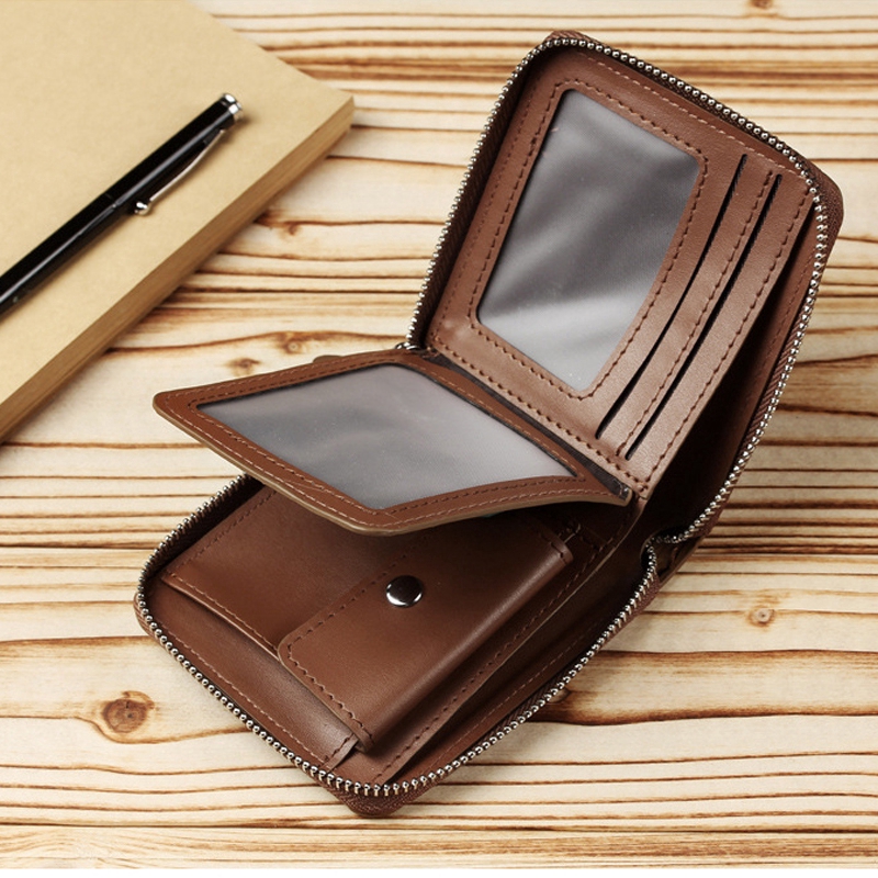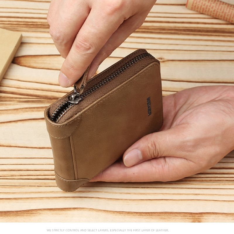 LABER LEE Bifold Wallet Men Pu Leather Short Zipper