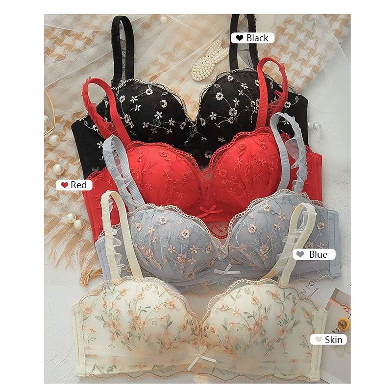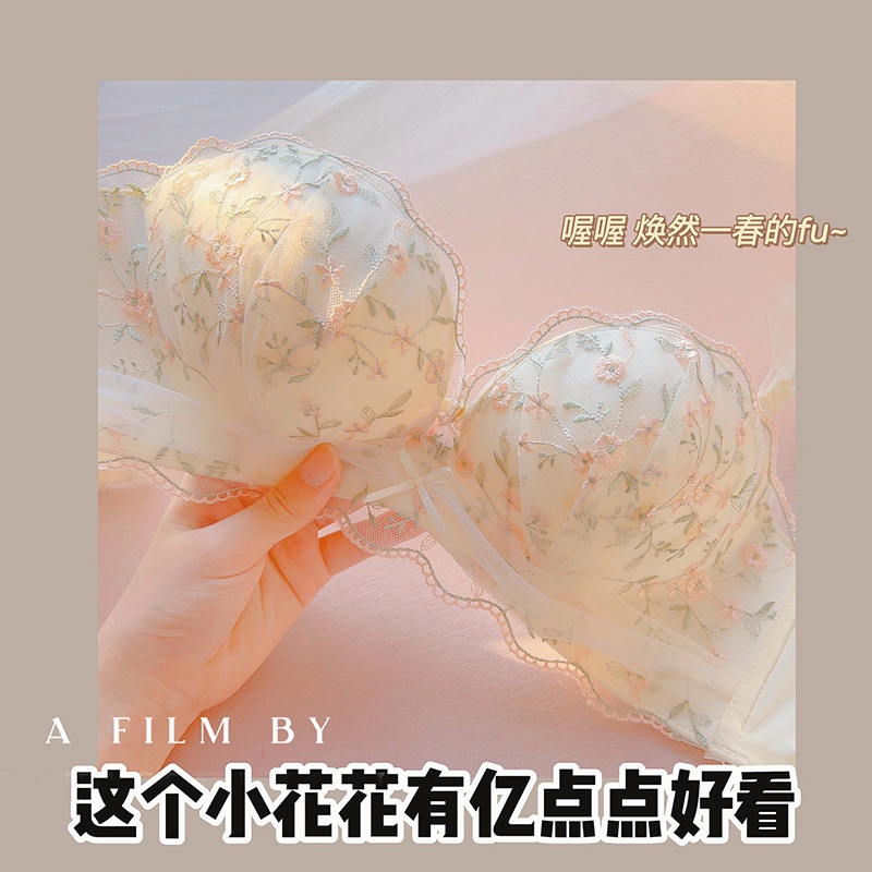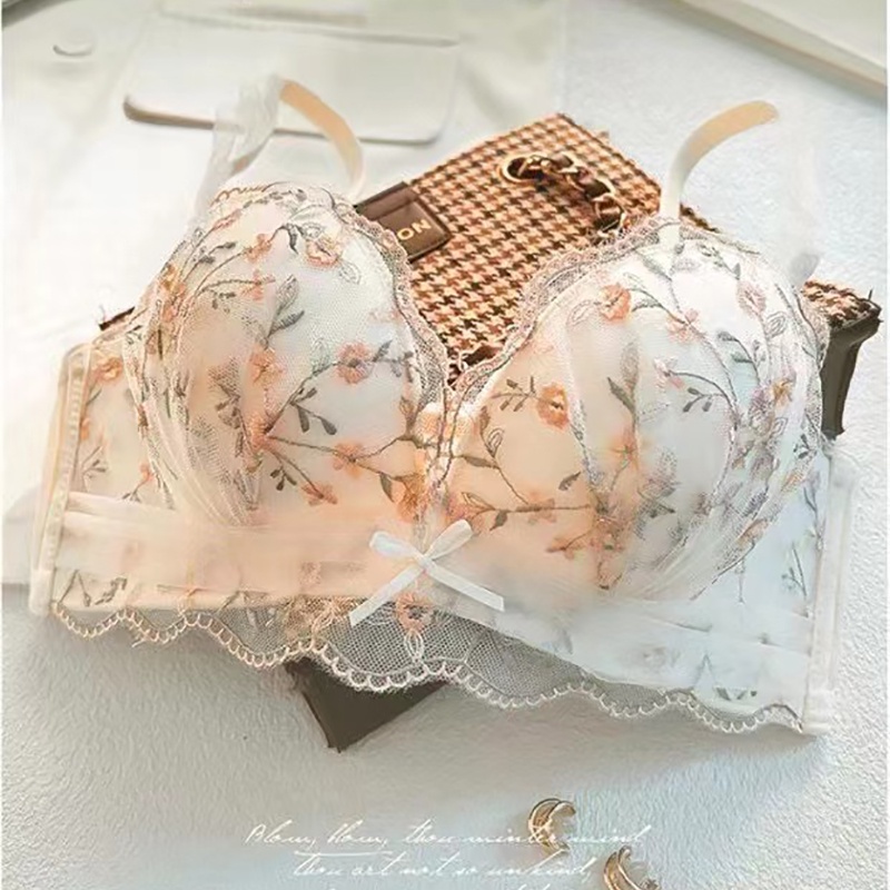Lace Bra Push Up Wireless Lingerie Small Chest Gathered Women's Embroidery Underwear Bralette