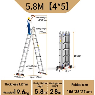 Ladder Multifunctional Ladder 3.7M/4.7M/5.8M Aluminum Folding Ladder Aluminum Herringbone Ladder