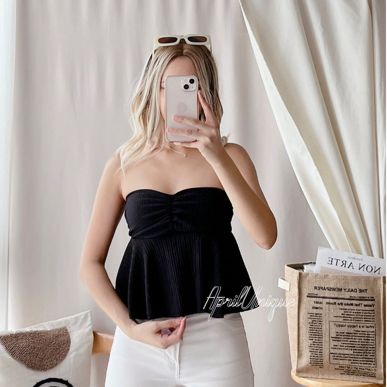 Ladies Sexy Tube Top Bark Crepe Ruffle Hem Backless Chest Wrap Top