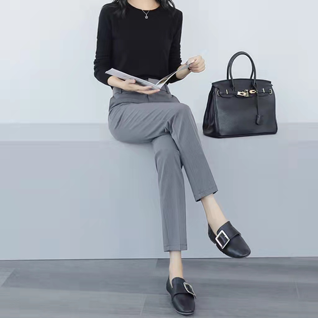Ladies Slacks Office Casual Formal Trouser Semi Skinny High Waist Grey Pants Darkblue Black Pants