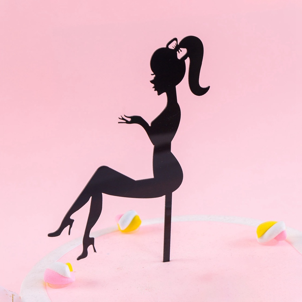 Lady Couple Acrylic Cake Topper Weddding Happy Birthday Cake Decoration Cupcake Topper Dessert Sign High Heels for Party Supply